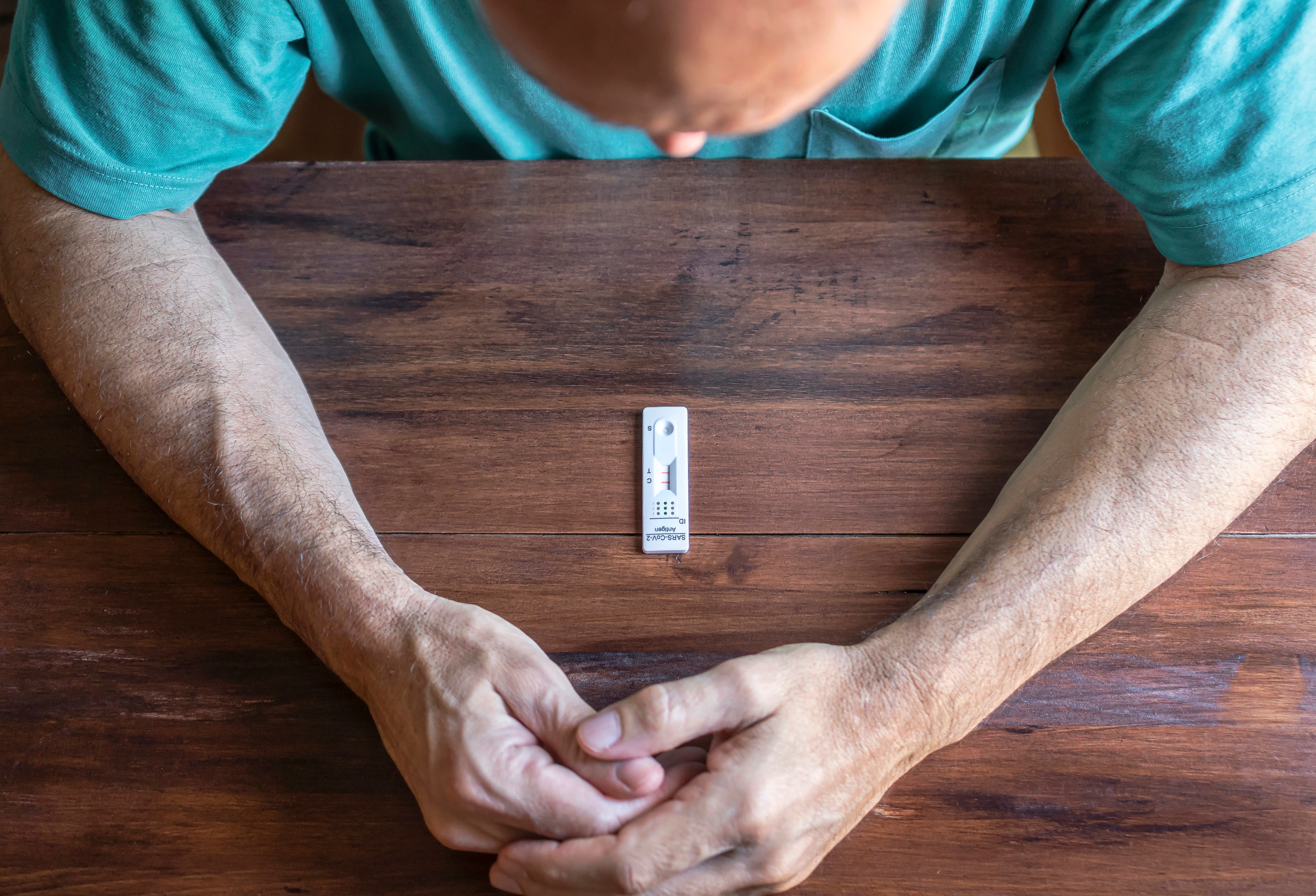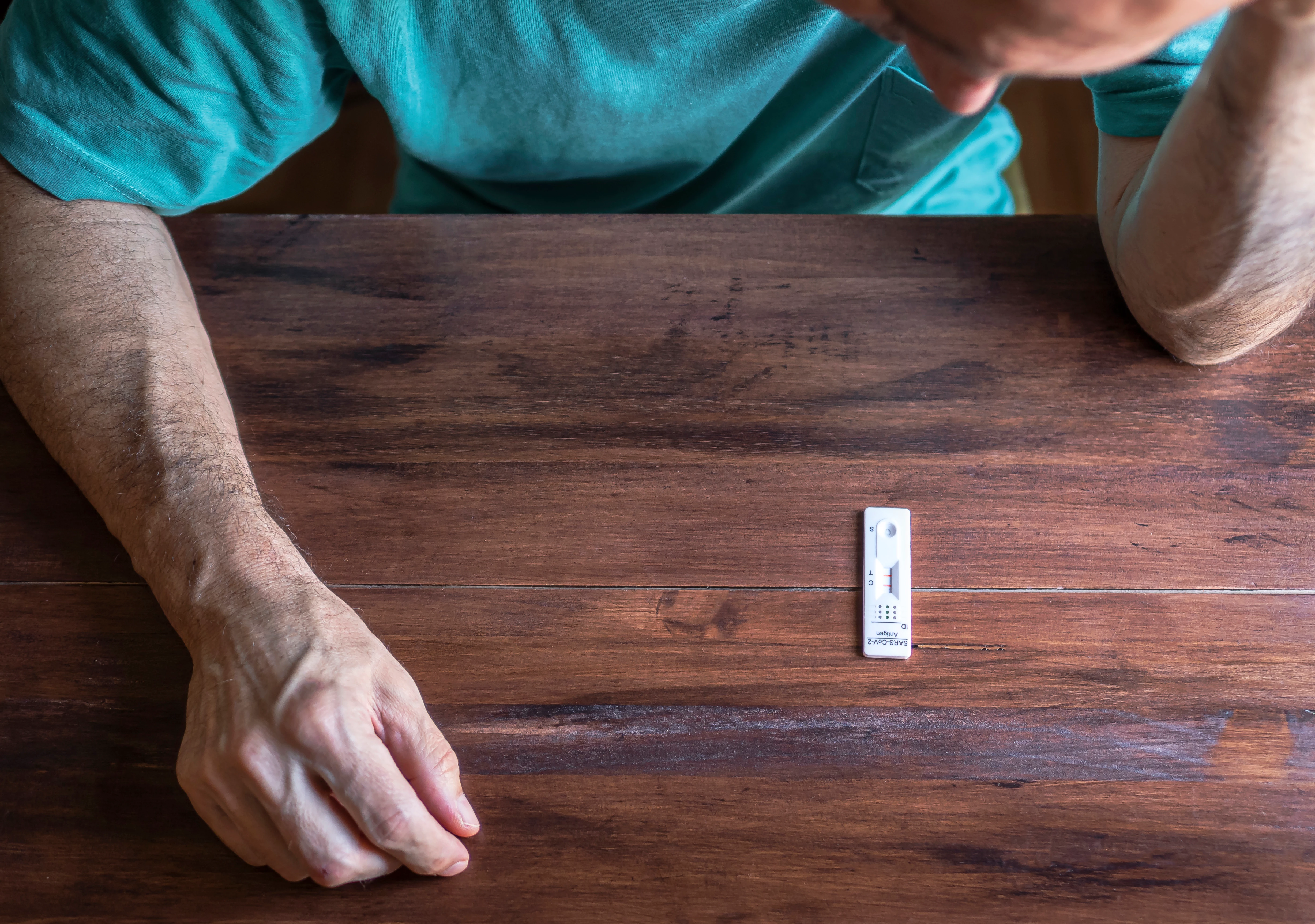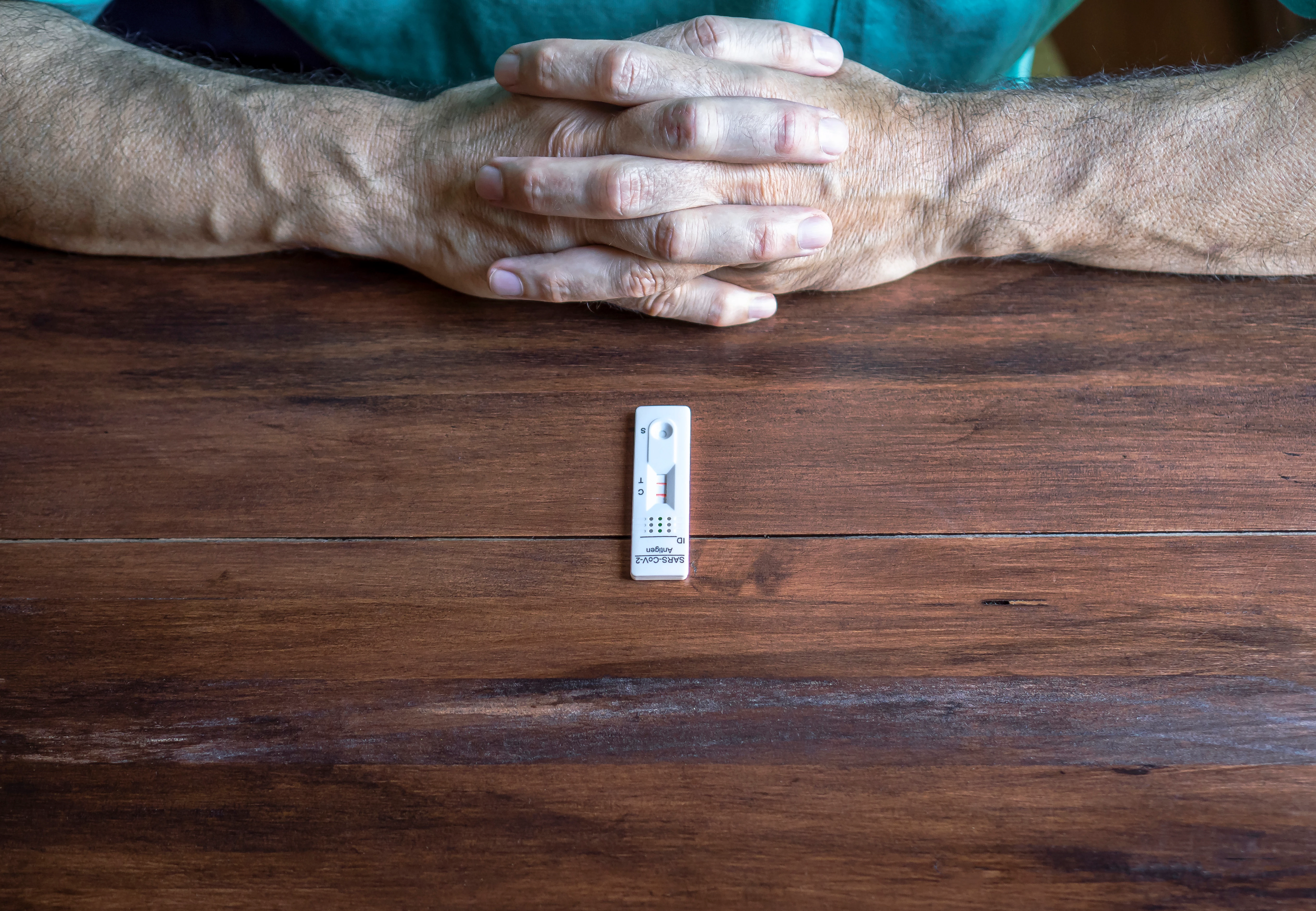 The antigen test text is not in sharp focus, there is lots of noise on it and purple and blue fringing along the top and side. Looking at your model's hands, similar issues of artifacts and colour fringing.