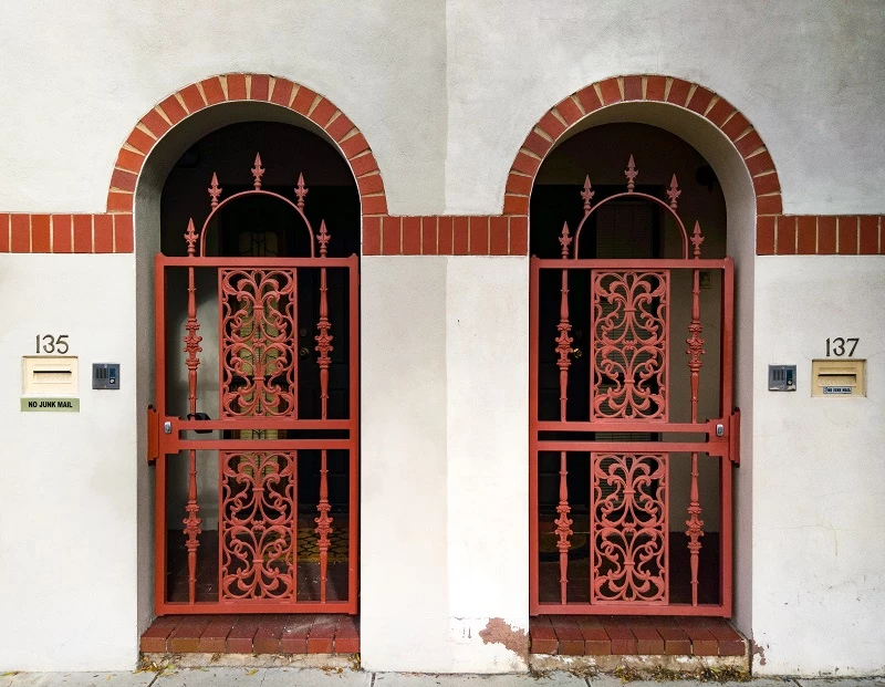 I have no idea whos house entryways that are but do know where they were taken (the location may be in the EXIF) and I doubt it is worth the effort going to get permission. I just took the photo as I thought their gates looked interesting and could be sellable. I do wonder why it should be needed anyway as the photo was taken in a public place (on the footpath) and all that is visible is on the boundary of that public footpath there should be no need in my opinion. The only potential way that someone might identify the place is the street number but there is no mention of the street or city. These buildings are not even all that significant would offer little more than what Googles street view dies. I do understand the need to be cautious but this to me seems a bit too far. I would love to hear what people think and any suggestions on how to take building photos without requiring permission. I am not against getting permissions in general but for a house or other building, it may be more trouble than it is worth.