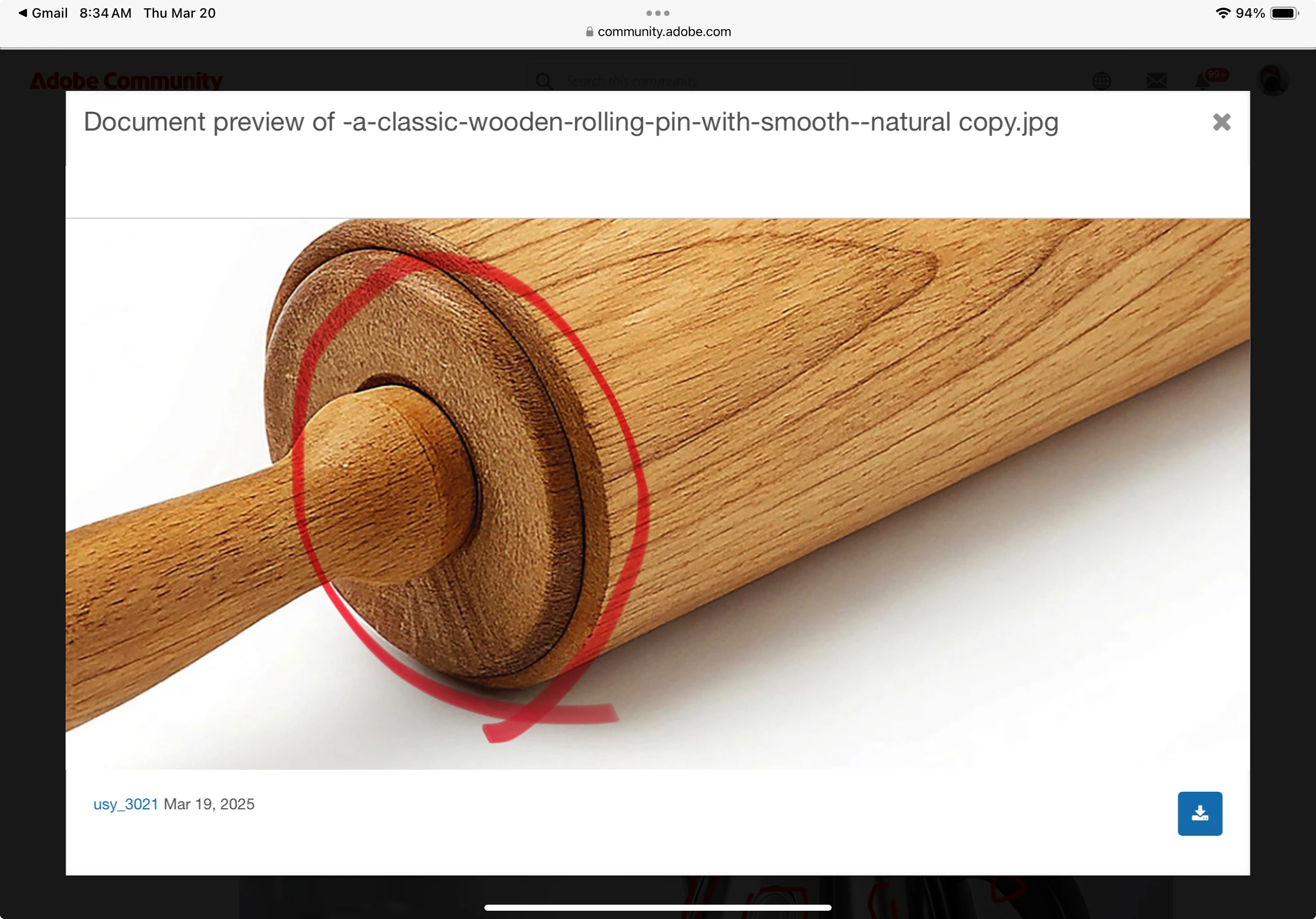 For your wooden rolling pin, did you try to do a cutout, to isolate the device for a neutral background? These "shadow" lines, claimed as artefacts by @RALPH_L remind me of a less than perfect cutout trial.