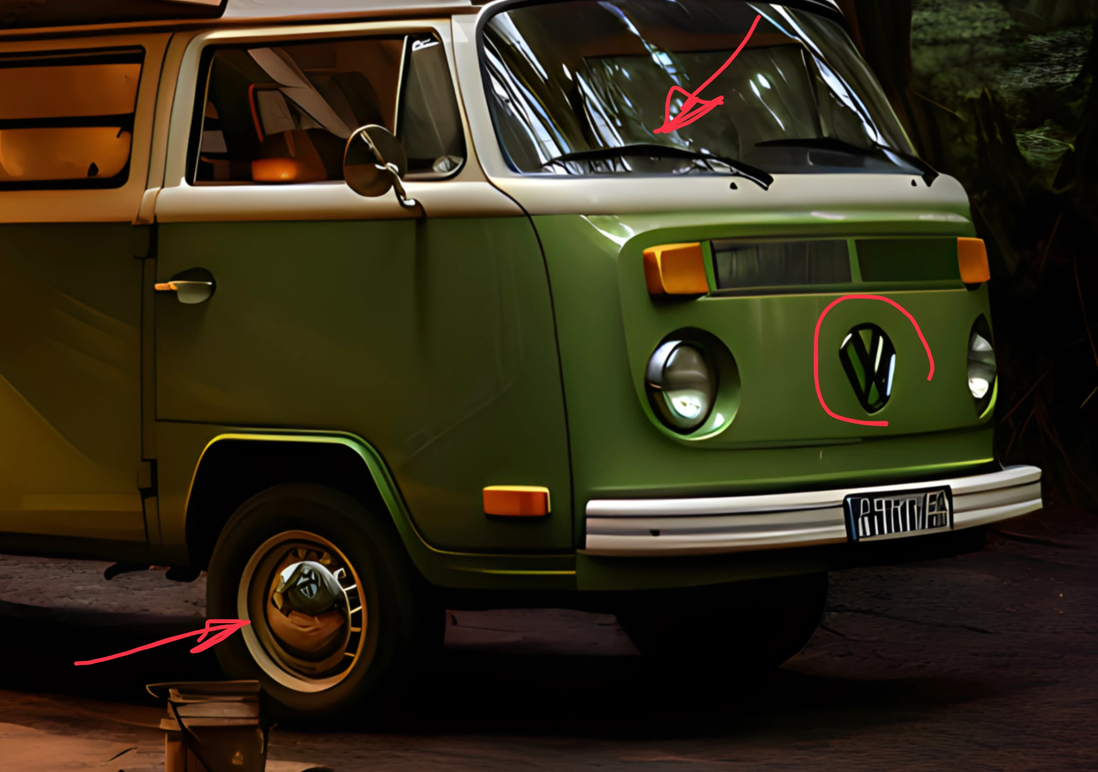 The VW logo on the front of the minivan, and the van itself, are Volkswagen IP and you cannot submit it without a property release from VW. The tables abd chairs have a mess of legs that don't connect, and as @Ricky336 indicated, there are other issues as well.