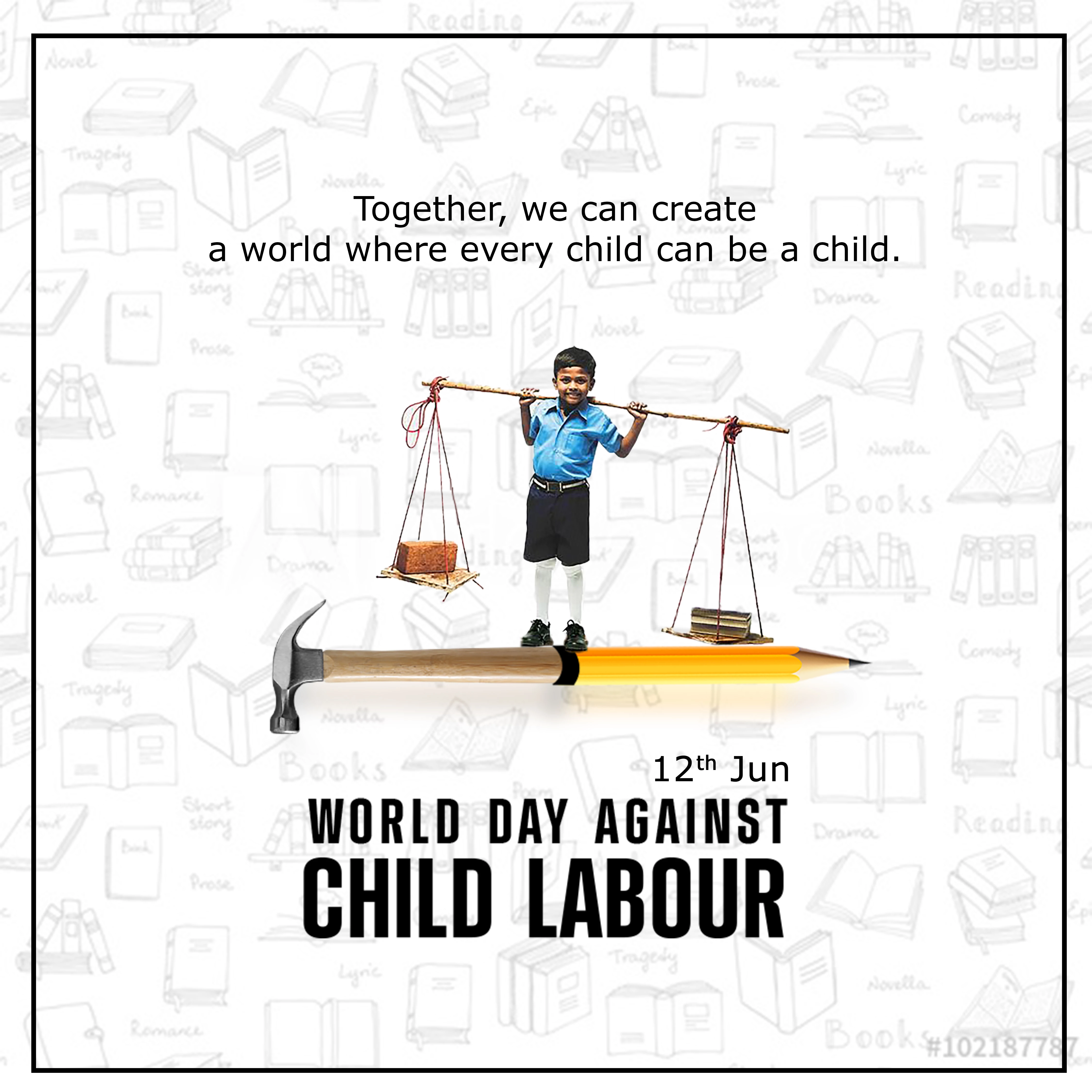 Moderators are not looking for completed designs with text. They want assets that graphic designers can use to create their own concepts. The boy without the text and borders would have a better chance of being accepted.