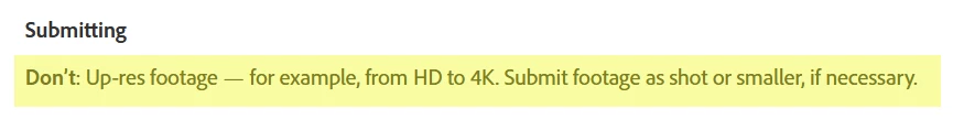 Recently, I upload a lot of videos with high quality according to me. I upscaled it using to 4k which in turn not only resize the resolution but adding the bits, but it was rejected for quality issues, can anyone help tell me what is the quality issues? So I can fix it in my future submission. Is quality issues only about unintentionla shaking, black frames, or audio issues? I mean i seems to not be able to find any technical issues, or the content of video affects the submission approval? I cannot upload the video as it is 200MB in size for 10s video. Thanks.