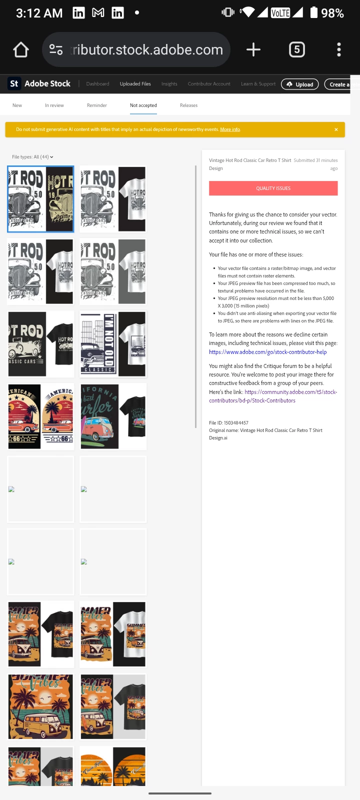 You will need to post one of your refused vector files as a vector file here. If they are Adobe Illustrator, save them as an Adobe Illustrator PDF file. The forum does not accept Adobe Illustrator files.