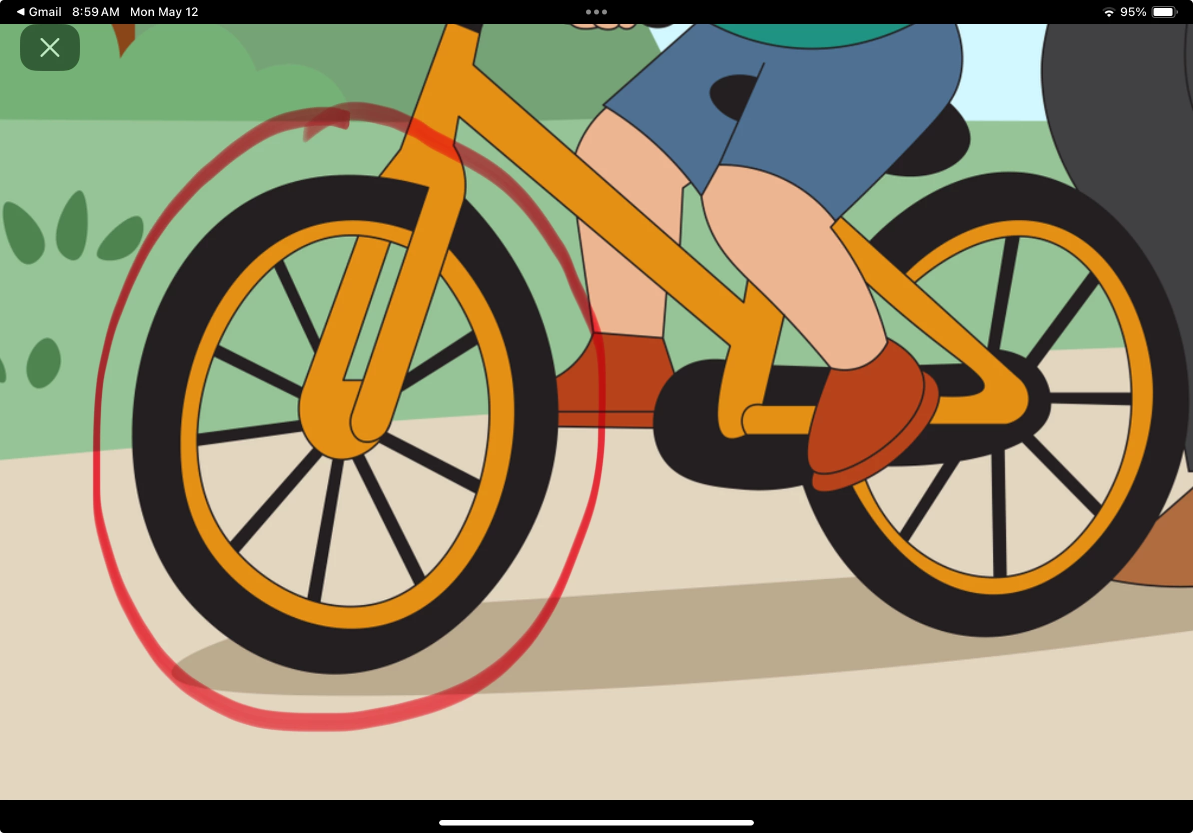 Bike tire shape, and tire intersects frame
