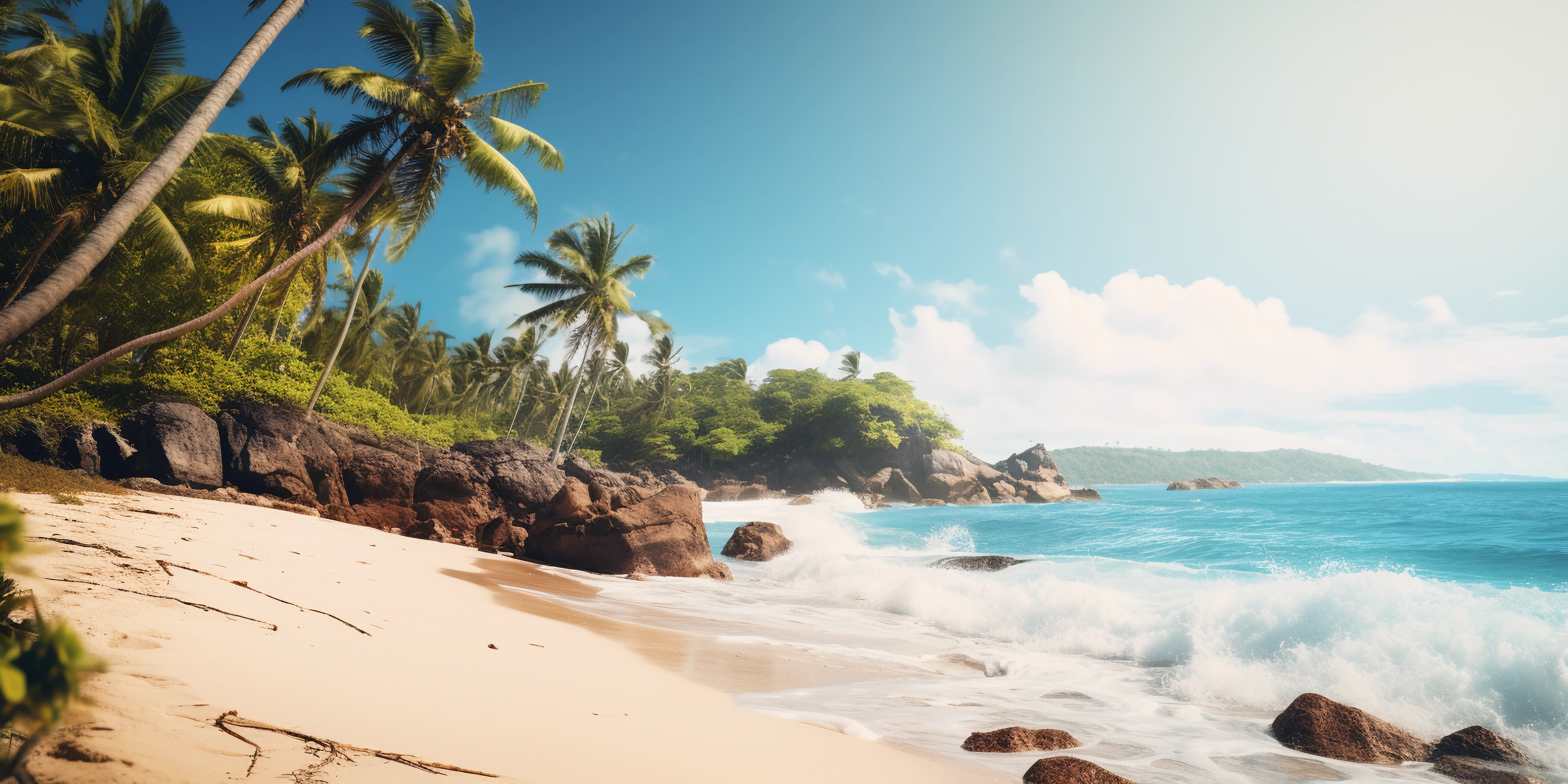 Beach: looks very fake. If you check the palms at 100%, you see forground melting into background.