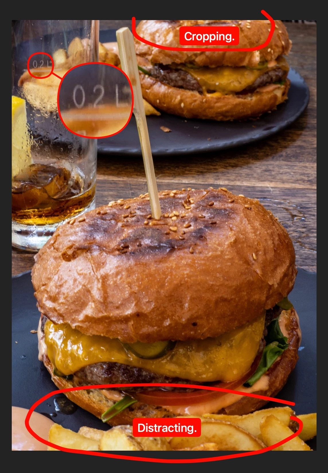 The hamburger photo is blurry.
