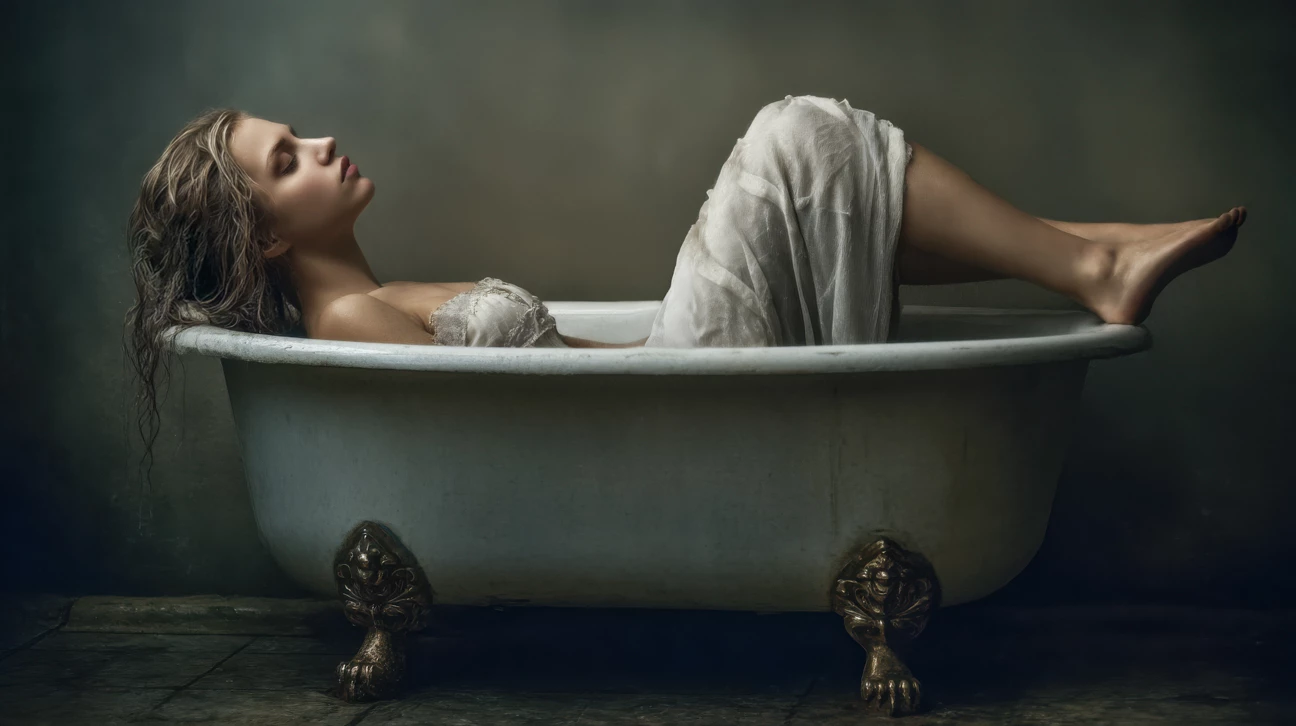 Original rejected due to quality issues. Corrected and resubmitted. Rejected as being "too similar." ~49,500 plus image women in bathtubs, but nothing similar to this that I could find.