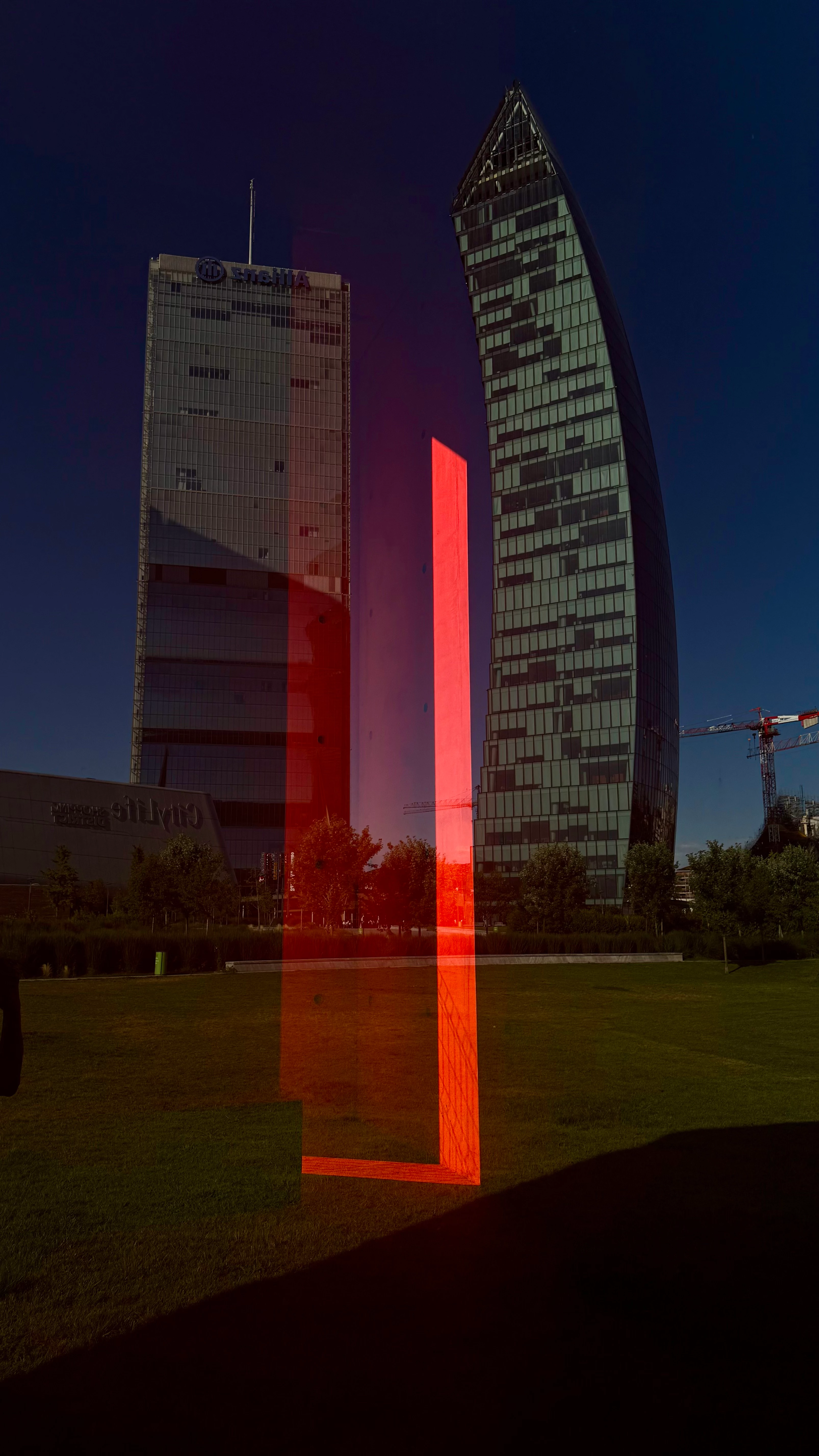 Is the building photo taken through a mirror or glass?