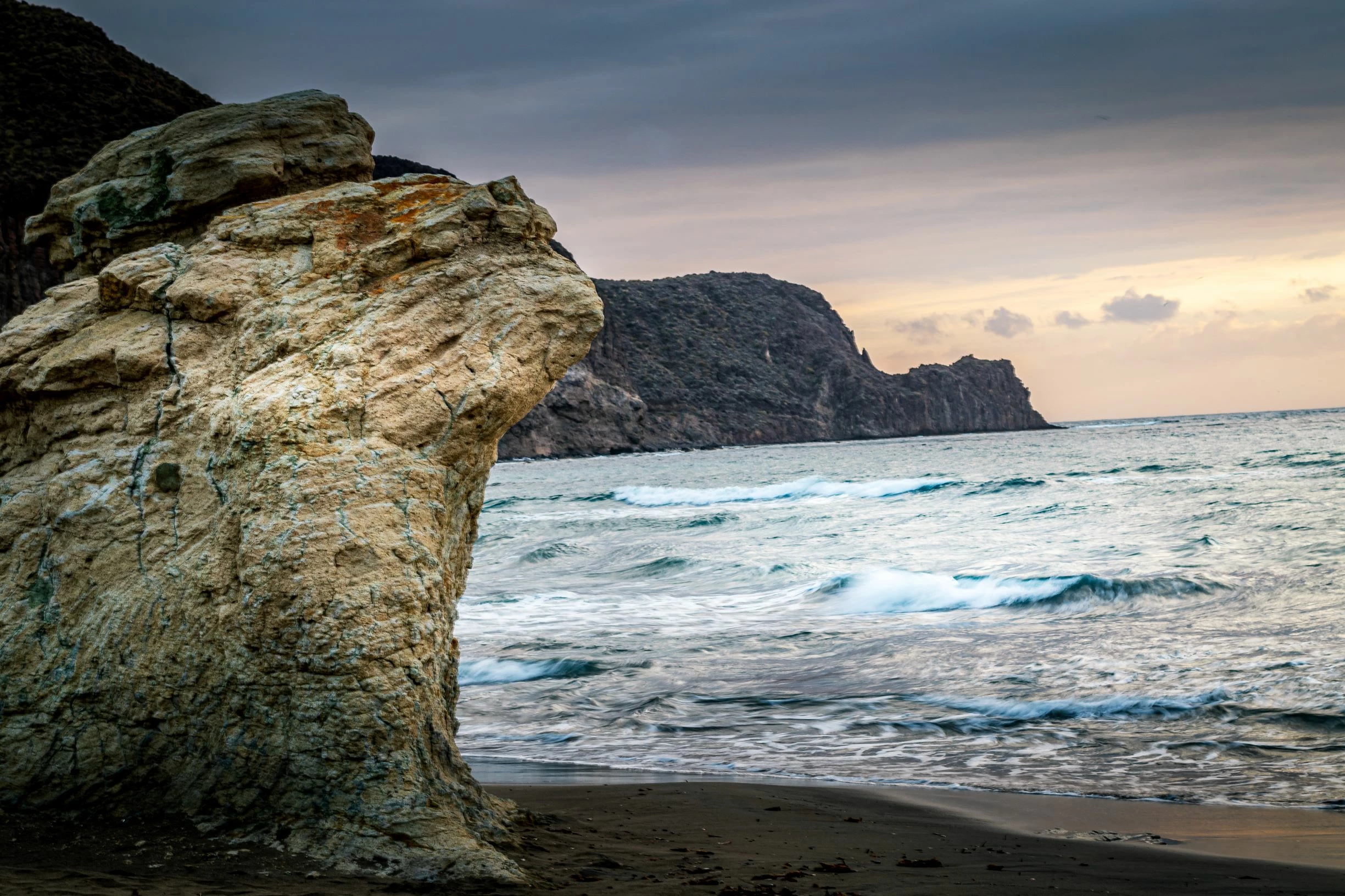 FWR-19: Shadows are underexposed. Rocks aren't in focus. Horizon not level. Sensor spots in the sky.