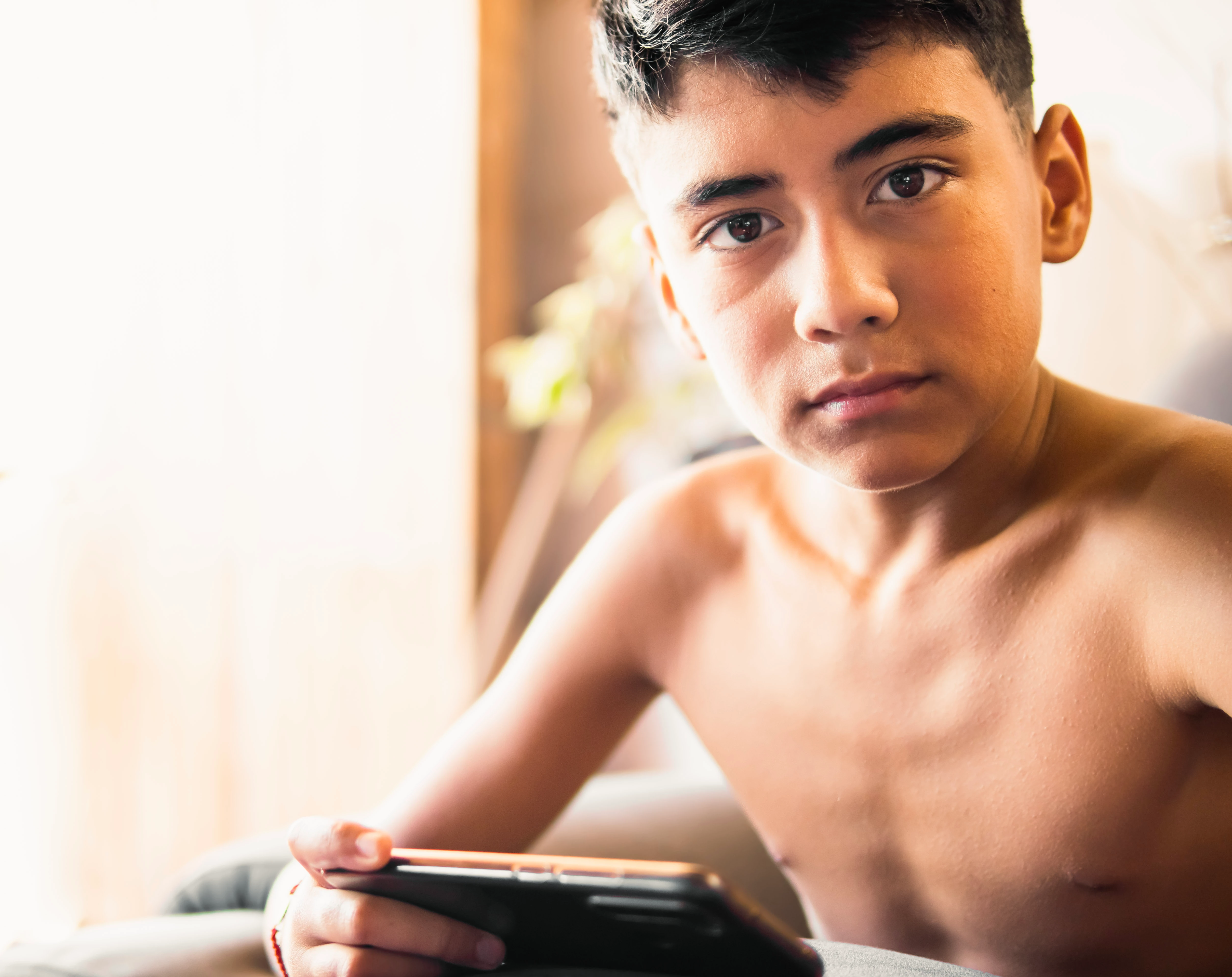 On a personal note, I would have asked the boy to put on a neutral t-shirt. This is adequate for family snapshots, but not for stock assets.