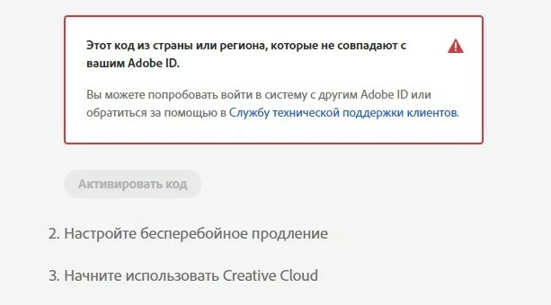 I finally got my redemption code but I cannot activate it due the following reason: This code is from a country or region that does not match your Adobe ID.