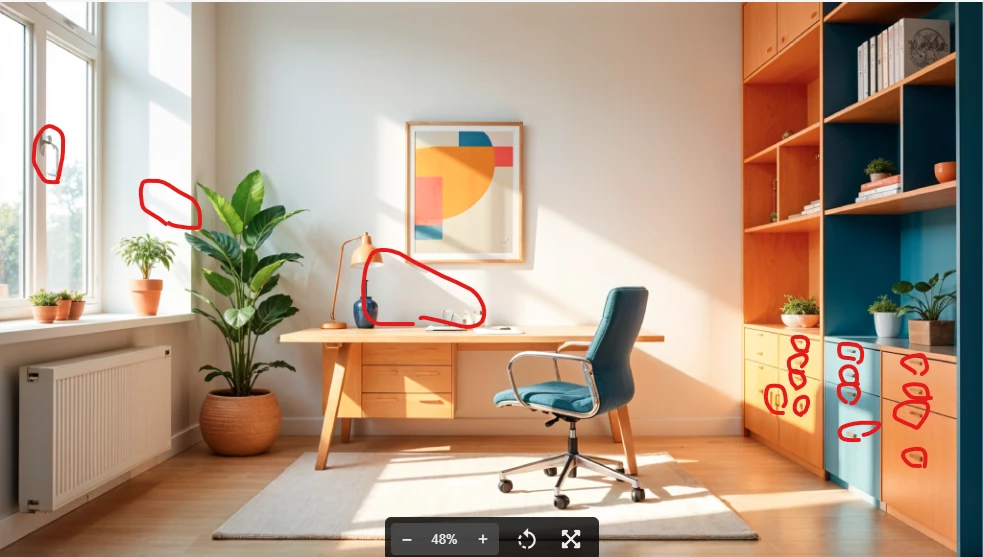 Typical of AI renderings for these type of interior images, the cabinet handles don't make sense, and the shadows on the wall aren't right. Yes, you must zoom in to 100-200% and carefully inspect each area. If you are not able to edit out the flaws, using Photoshop or some other image editor, the image should be discarded.