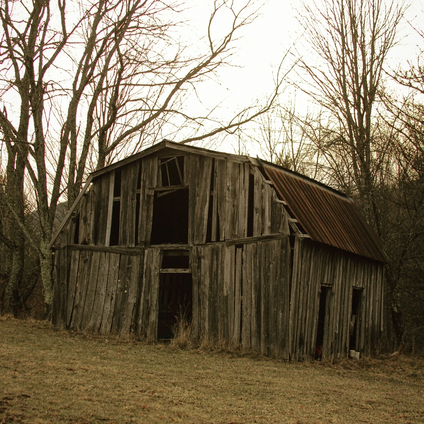 I think the barn/ruin is the more interesting photo. But it will need a lot of retouching to make it pop.