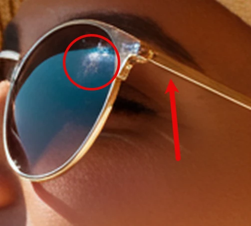 The aliasing has probably been caused or amplified by upscaling. With the reflection, your AI did a bit too much. The Hair has the same aliasing issue.