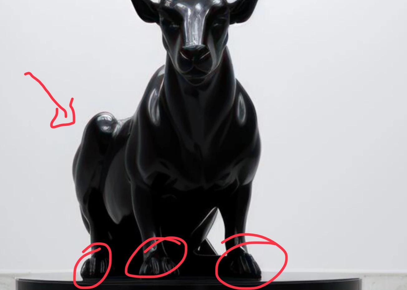 Artefacts around the horn and other body parts and at the right border. What strange animal has paws and horns? Missing contrast, the body of the beast needs to have the shadows lifted, so that some detail is visible.