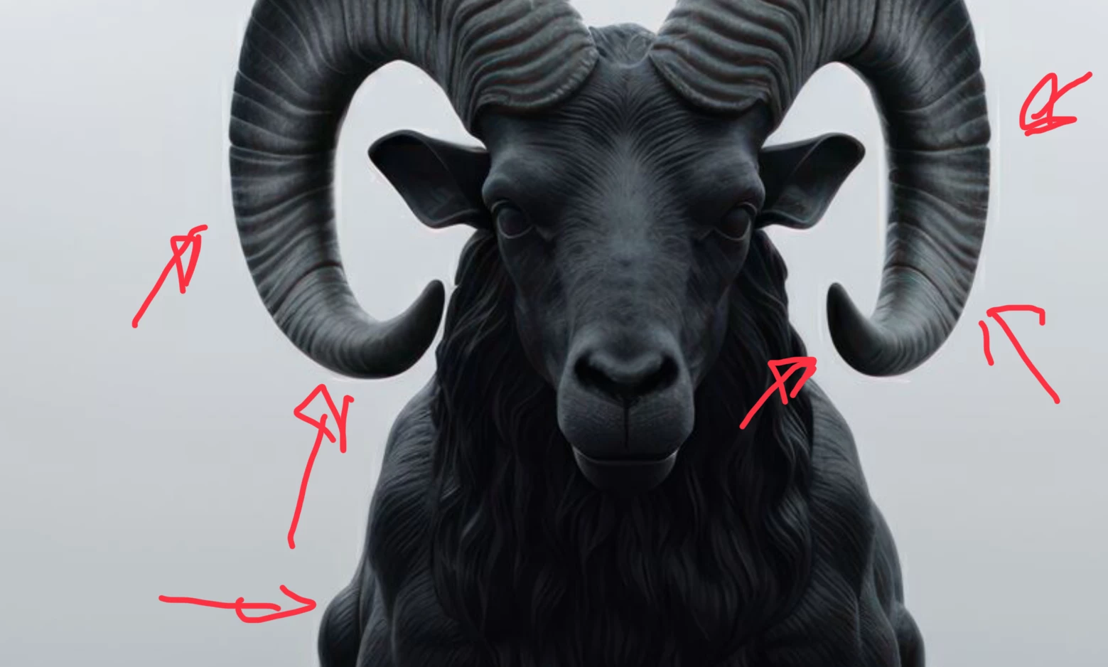 2. The ram is underexposed. Artifacts around the edges look like over-sharpening.