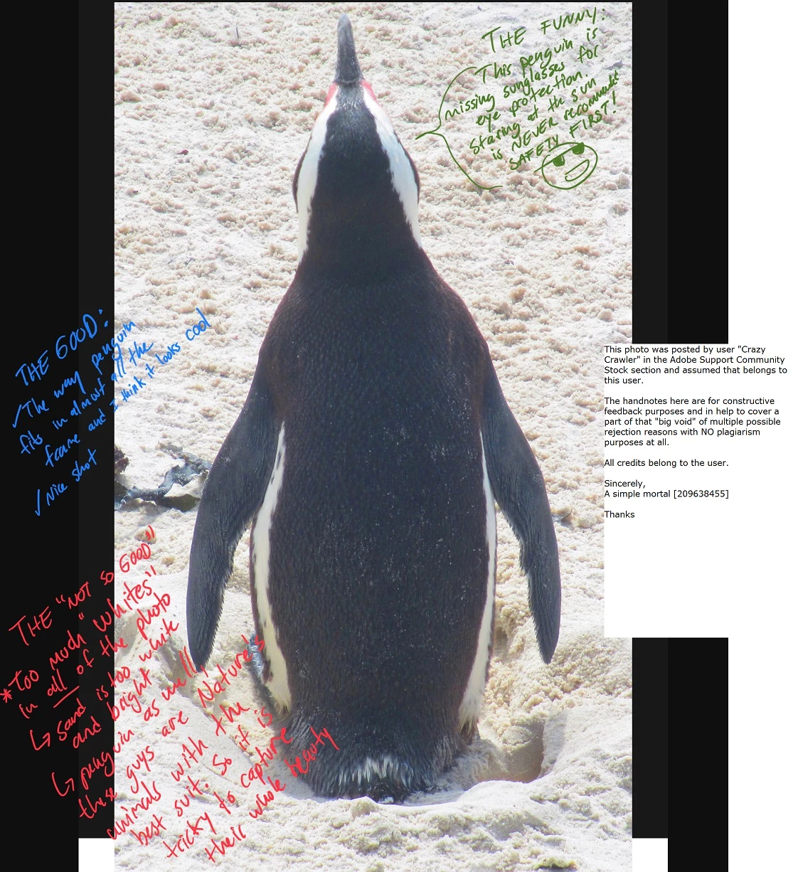Switchlab is right... The first picture is way too green and overexposed and the penguin is also overexposed as well as chromatic aberration - this when the lens doesn't focus the light exactly and so you get fringing on the edges like here: