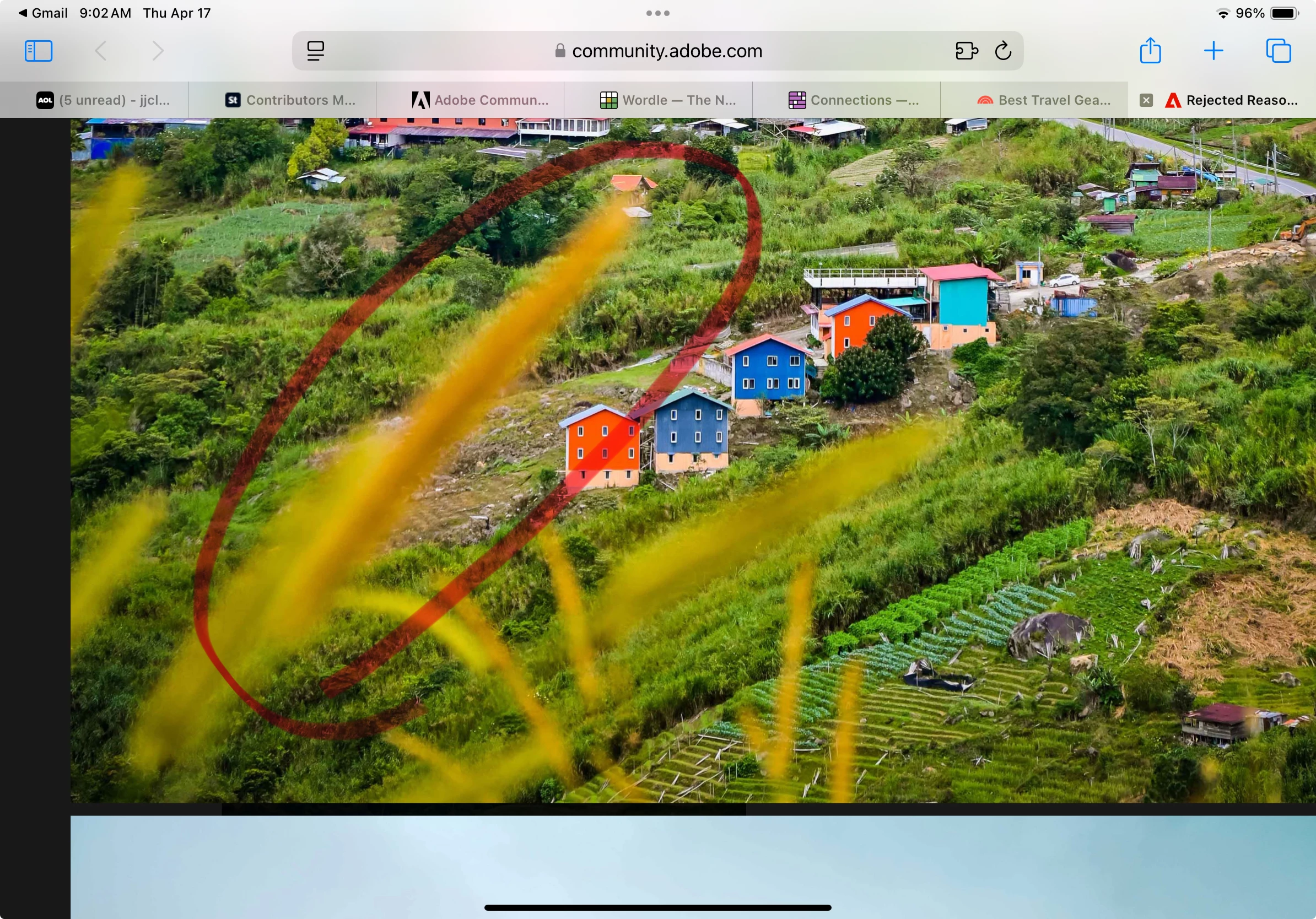There are artifacts in the sky on several of these, a person that needs to be removed, and large blurry objects intruding into the frame.