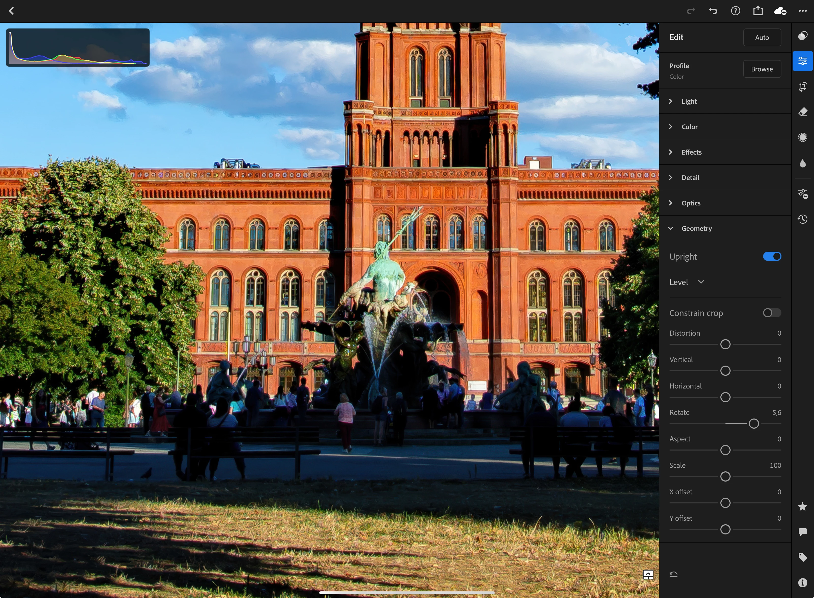 You would need to correct the exposure and take down the saturation. The asset is not level and would need a perspective correction. In addition, there are artefacts in the image, very visible if you check the clouds.
