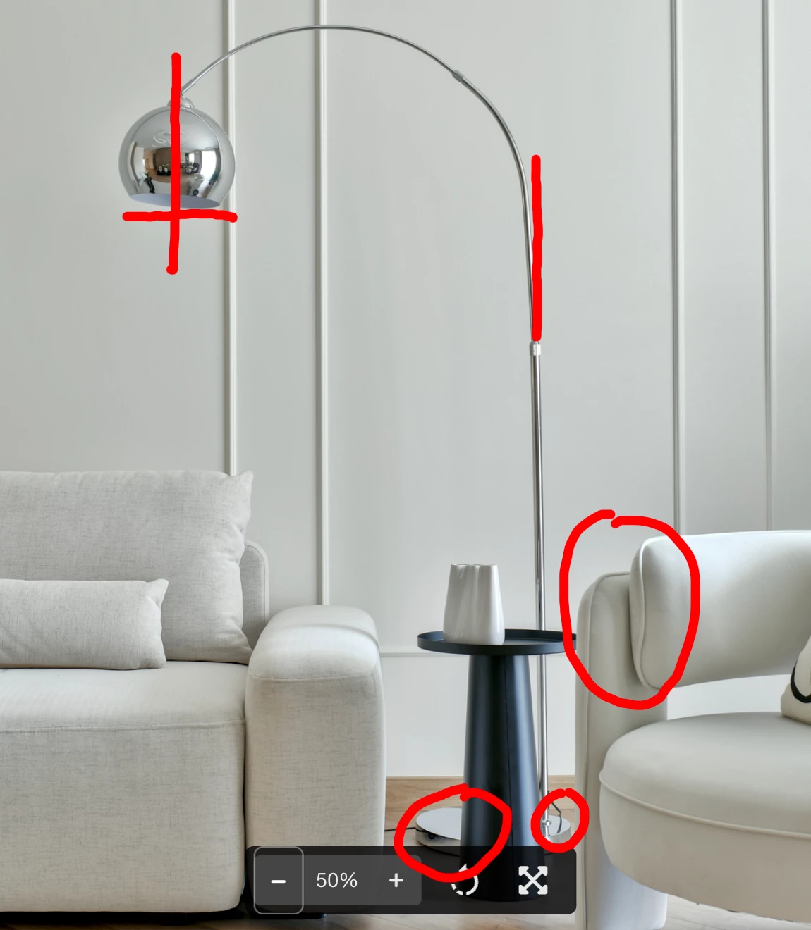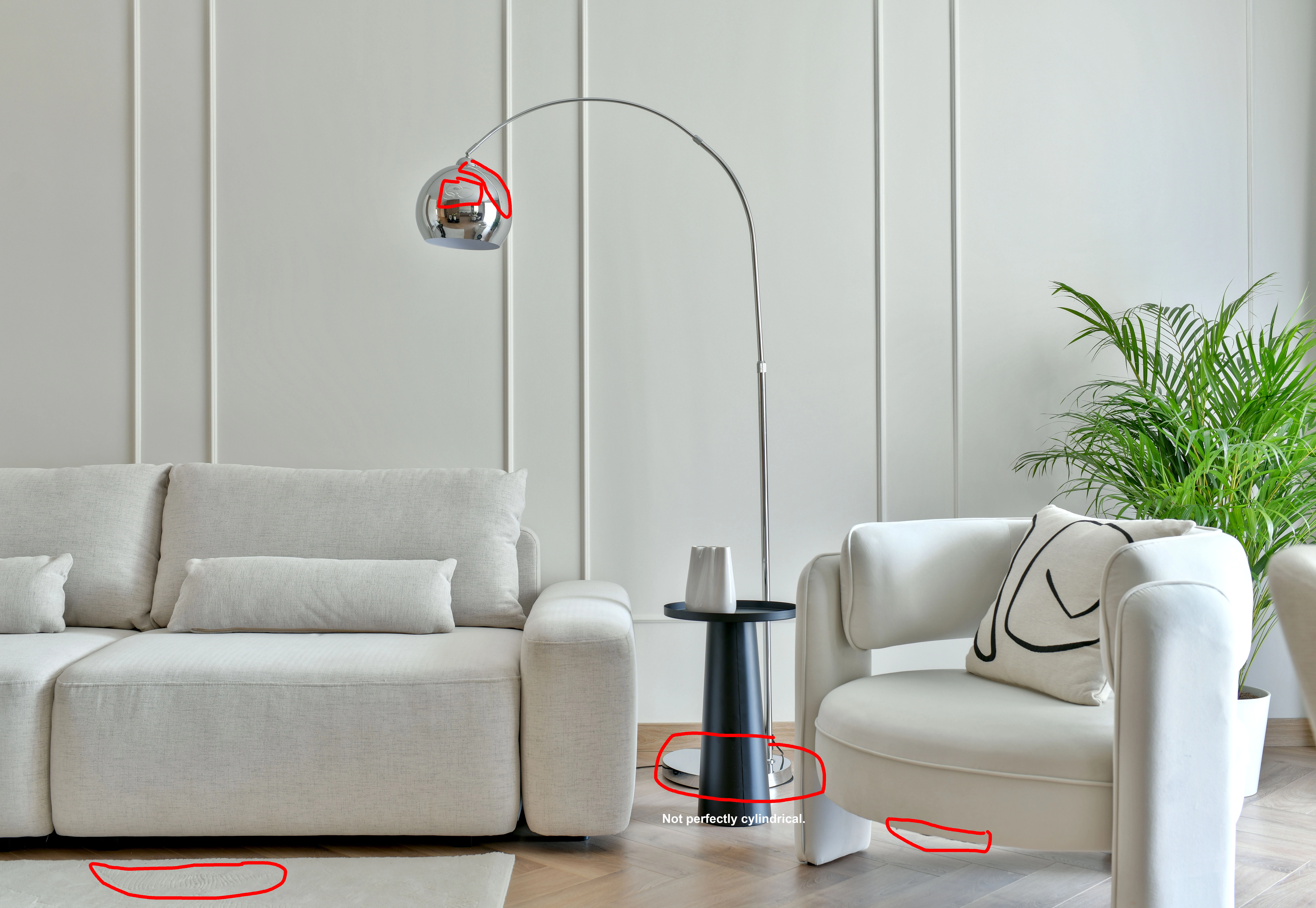 The burnt-out area here could well be a reason for rejection. As well as part of another sofa!