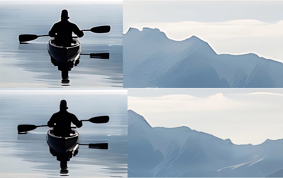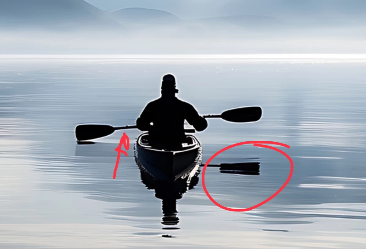 It's a nice picture, but the white halo around the objects is disturbing. In addition, the paddle mirroring is looking wrong. The asset is missing contrast.