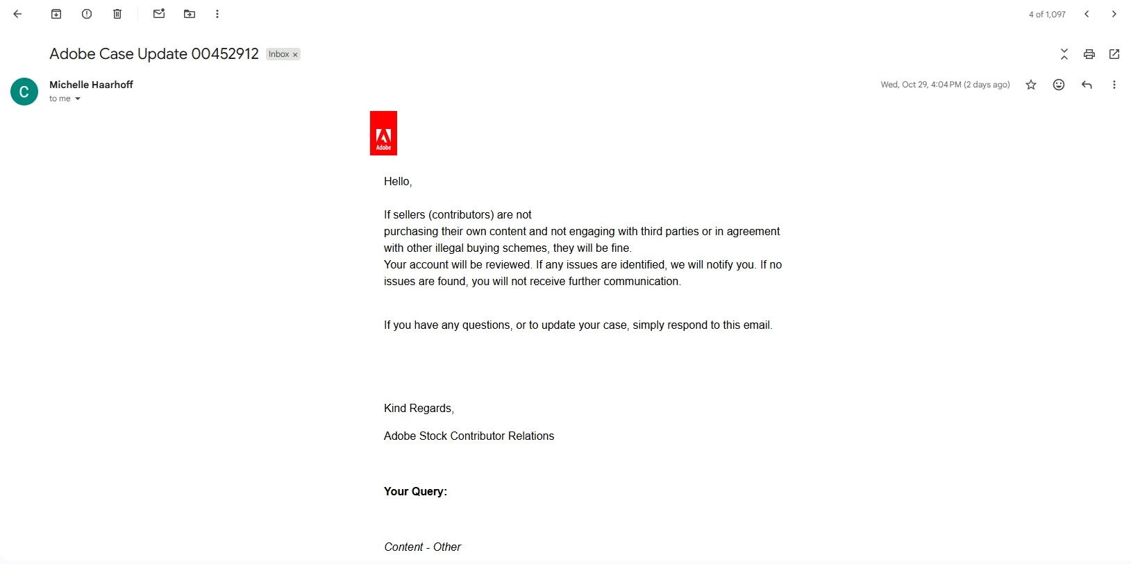 I would like to respectfully share that I had immediately informed Adobe on the same day these downloads occurred, requesting them to kindly check why there was such a high number of downloads on my account. (You may recall, I had drafted that email earlier.) I am also attaching screenshots of the emails I sent to Adobe as well as a screenshot of my account for reference.