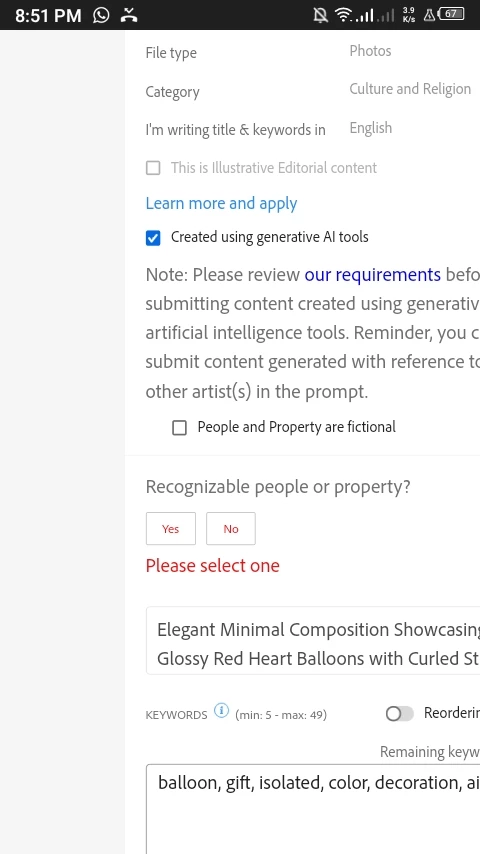I’ve been submitting AI-generated images to Adobe Stock for a while now and have had over 500 images accepted. However, I’m running into some confusion with certain aspects of the submission process and would greatly appreciate some advice.