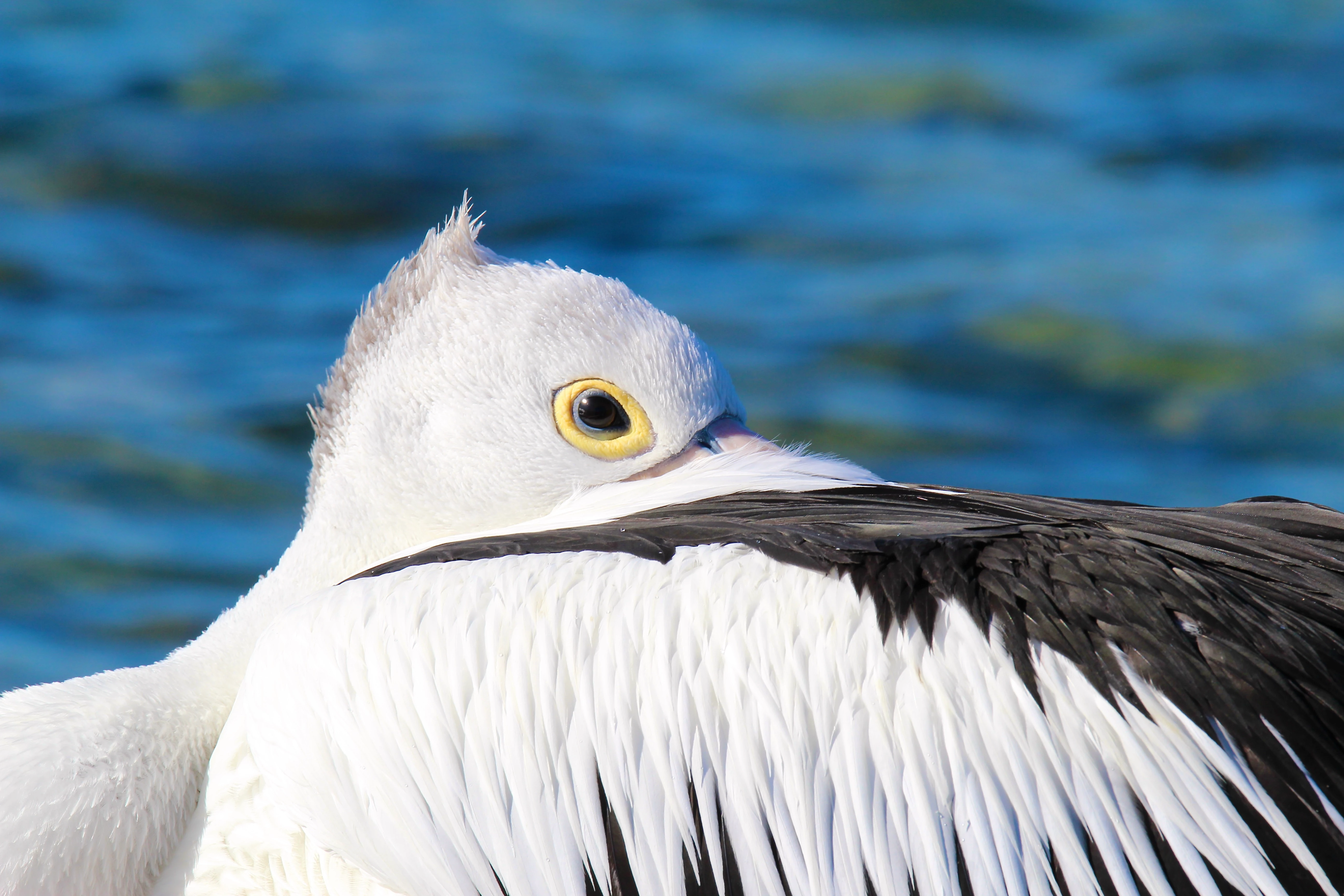 The feathers on the pelican's head are overexposed. You need to reduce the highlights. If these are 'straight-from-the-camera', you need to do some post-processing to fix some exposure issues in photo editing software - e.g. Adobe Photoshop.