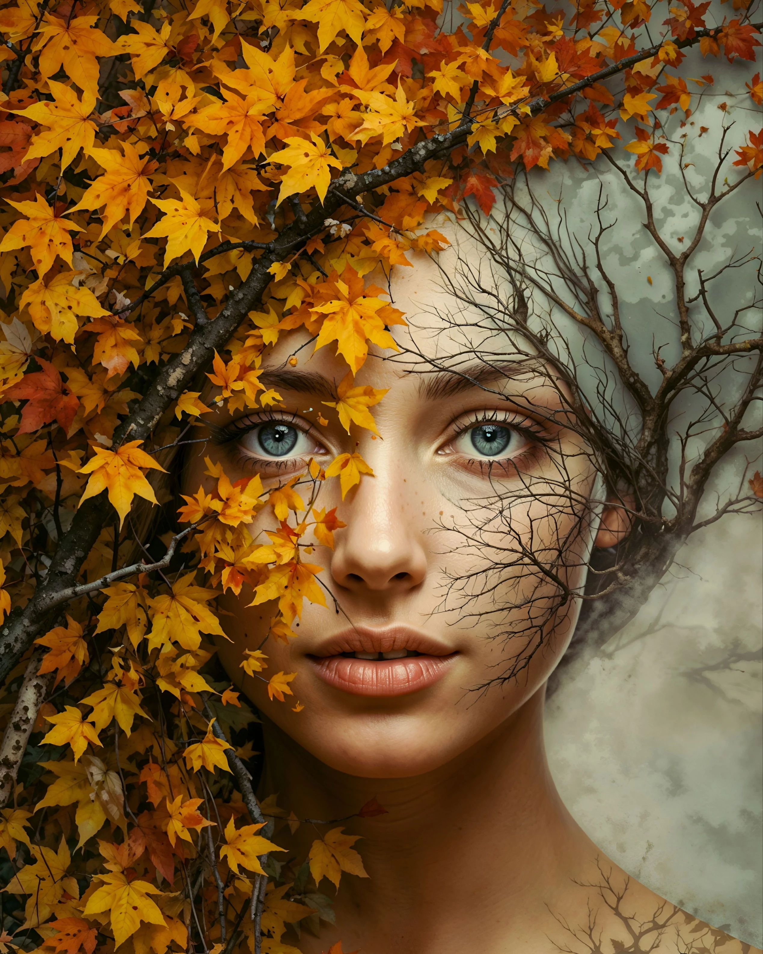 autumn, seasonal concept, autumn aesthetic, fall inspired, forest woman, autumn inspiration, autumn portrait, fall leaves, seasonal beauty, fantasy art, conceptual art, warm colors, autumn fashion, creative photography, leafy hair, autumn concept, natural crown, autumn goddess, magical portrait, autumn makeup, fantasy portrait, autumn background, dreamy portrait, autumn season, nature inspired, earthy palette, fall woman, fall fashion, seasonal headpiece, enchanting portrait, mystical art, rustic beauty, nature theme, artistic portrait, foliage hair, fantasy beauty., woman, beauty, fashion, fantasy"