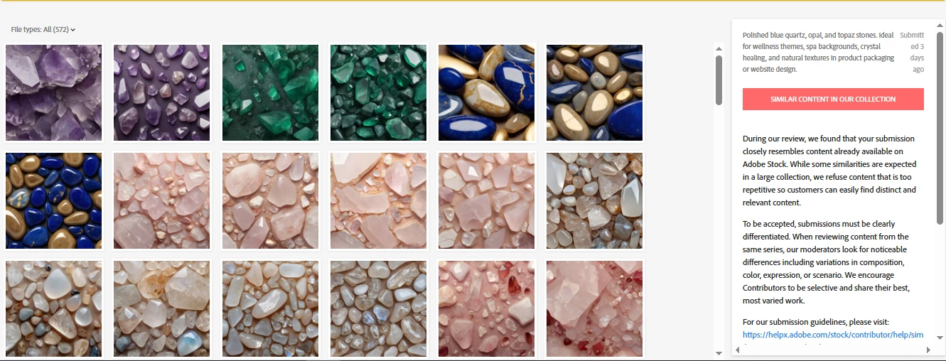 NNausheen TalhaKnown ParticipantForum|Forum|10 months agoMay 13, 2025Questionsimilar content erorsForum|Forum|10 months agoMay 13, 20252 replies212 viewsy i am seeing this similr contetn error from last month , not a single asset of mine is accepting by adobe stock.ContributorsContributor critique