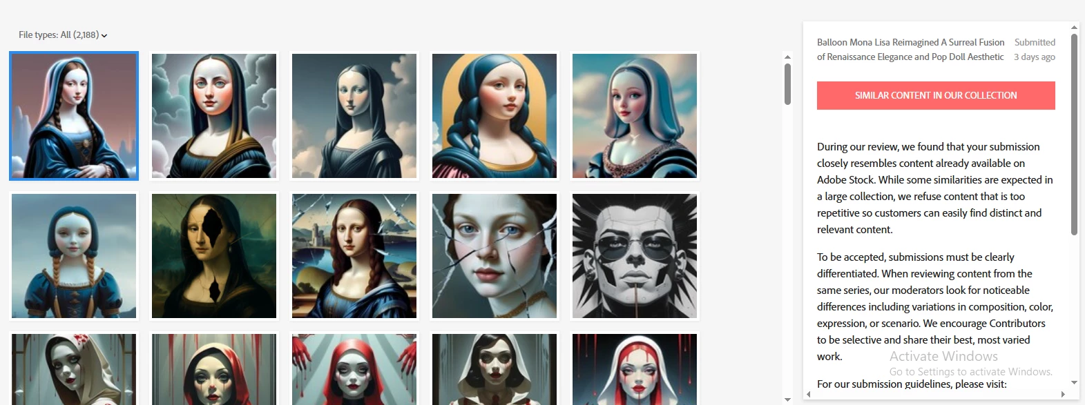 What’s going on with this 'similar images' issue? Out of 10 images, only one was accepted, even though the others are clearly not similar. I used completely different prompts to generate each of them, so there's no reason for them to be flagged as Similar.