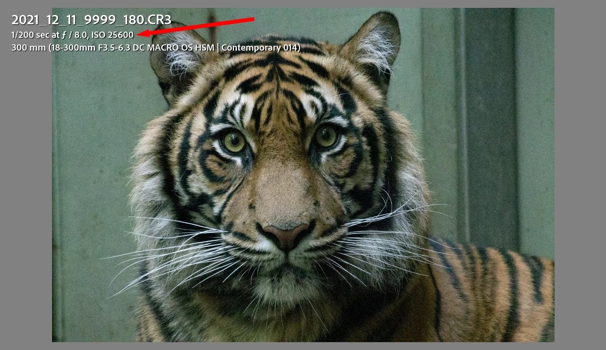 This photo has and ISO of 25,600. As seen below, a considerable amount of noise can be seen at a magnification of 200%.