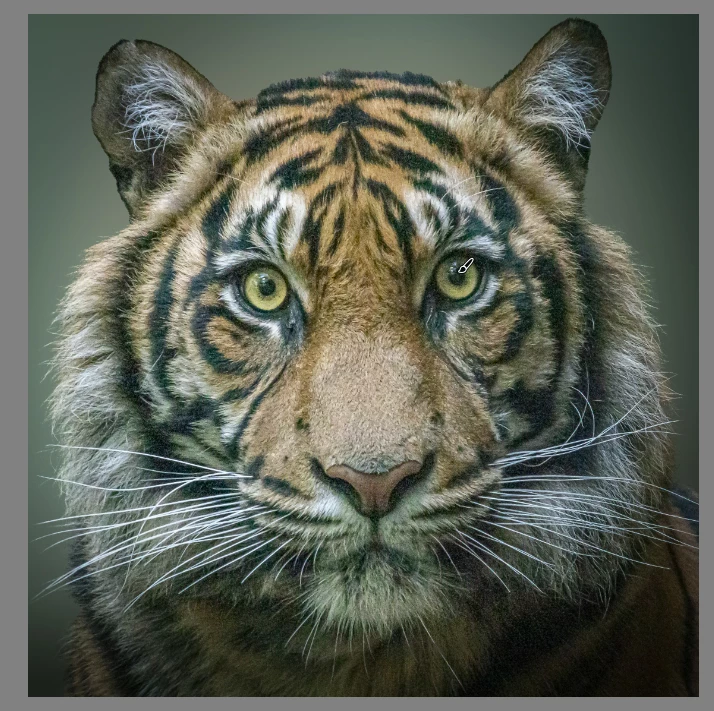 When viewing the subjects eyes, there is still plenty of sharpness and details. Considerable noise has also been removed from the subject.