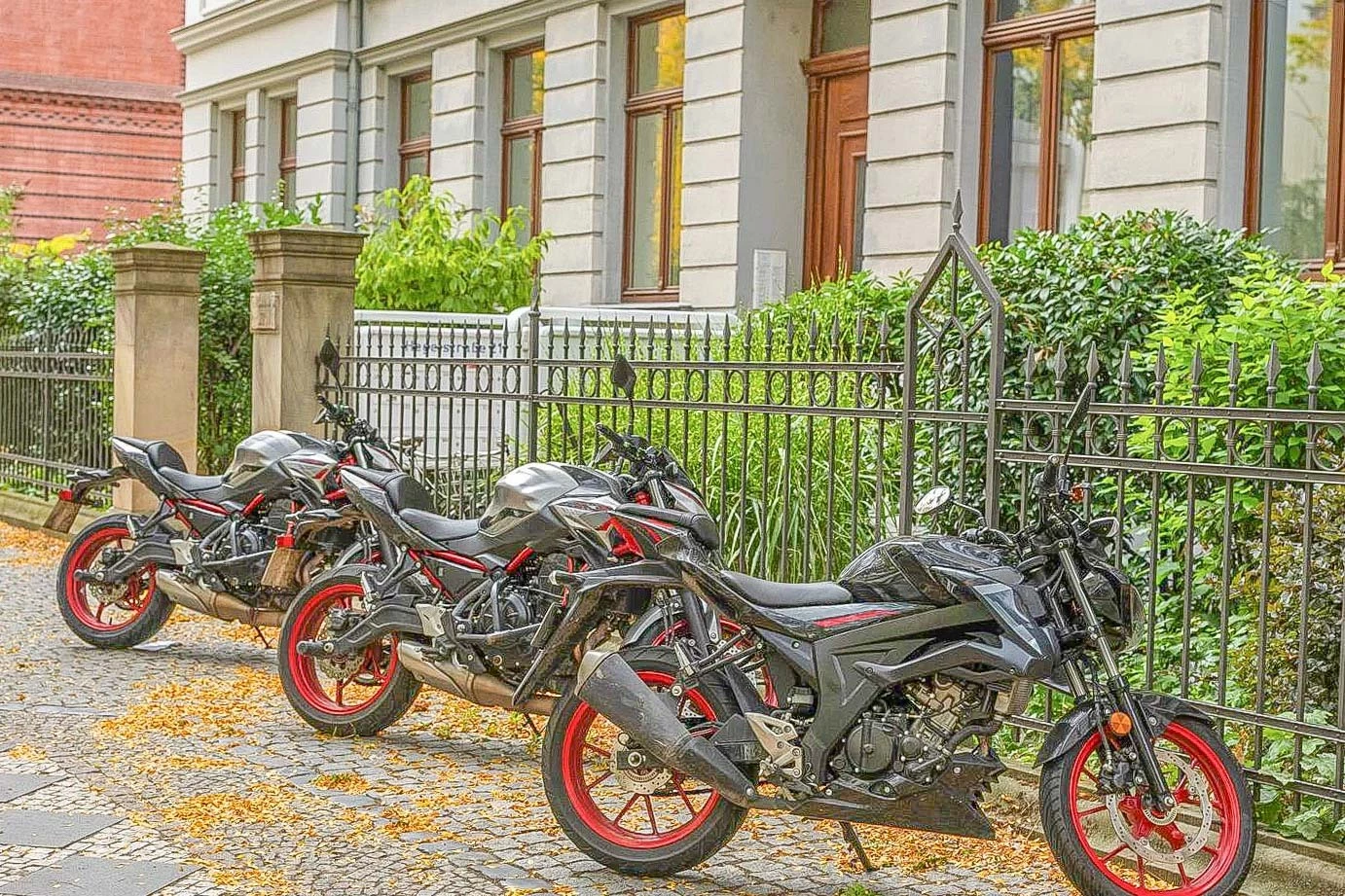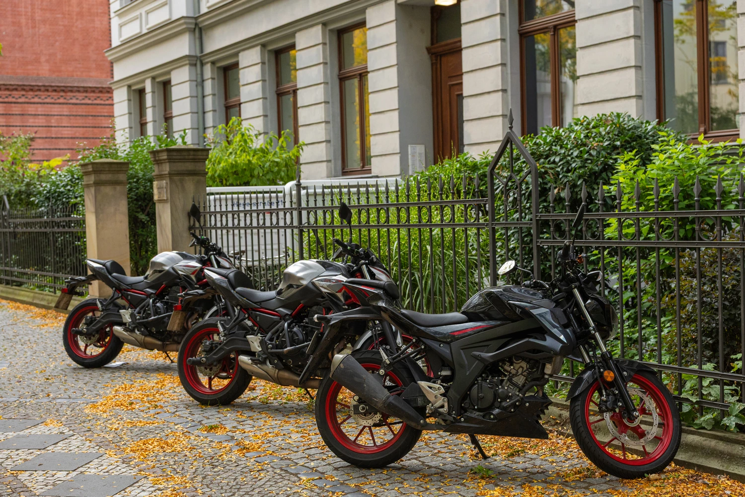 3. The motorcycles are slightly underexposed and the horizontal and vertical lines are off. The photo also needs to be sharpened. See below.