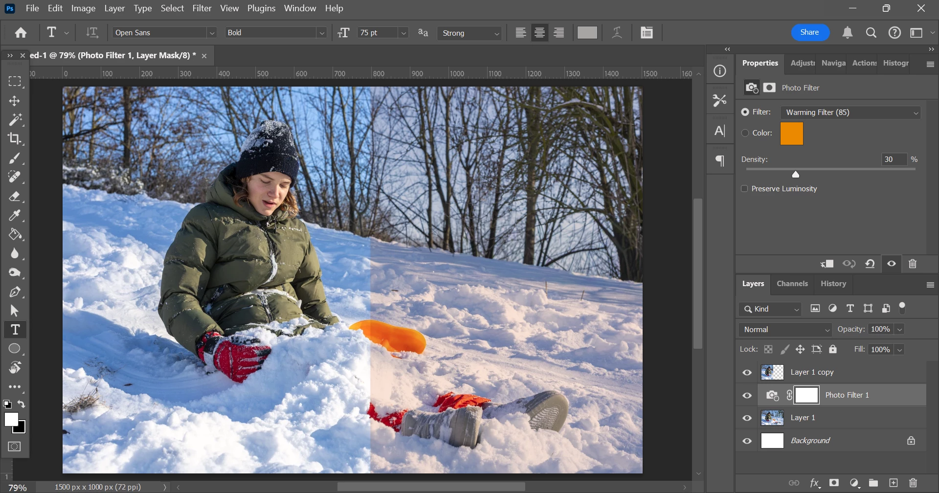 To compensate, I used a warming filter with Photoshop’s Photo Filter tool on an Adjustment Layer.
