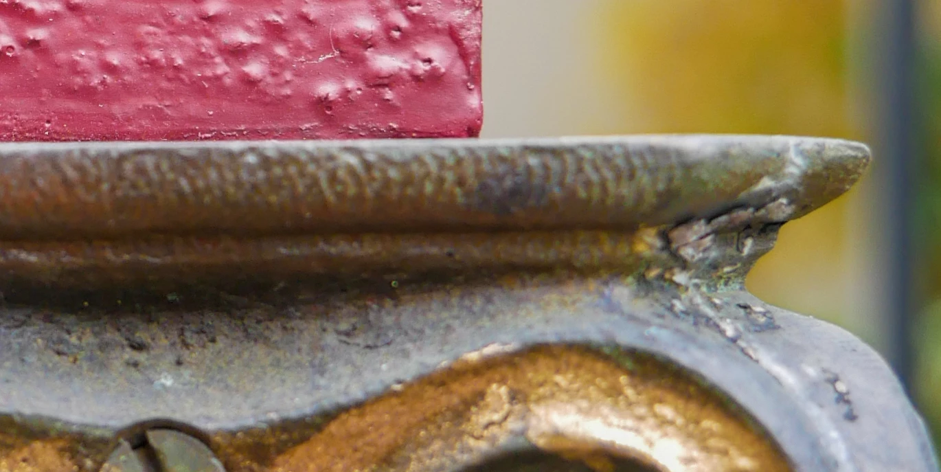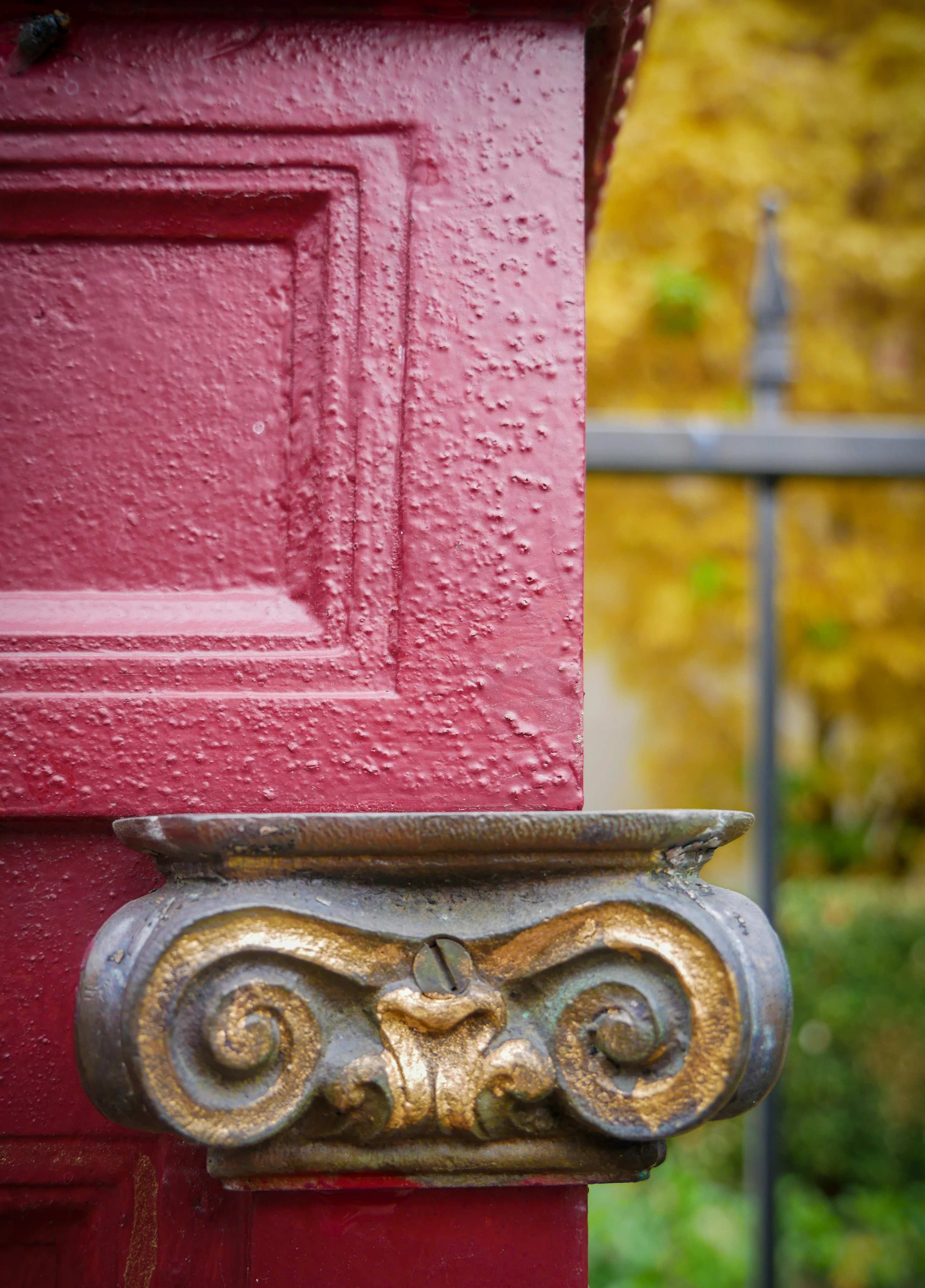 I would agree with @Jill_C that it is a focus issue. I think with your shallow depth of field, you actually focussed on the red pillar rather than the ornate detail which is the more interesting detail. See the snippet of your photo at 100% magnification.