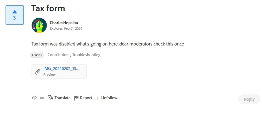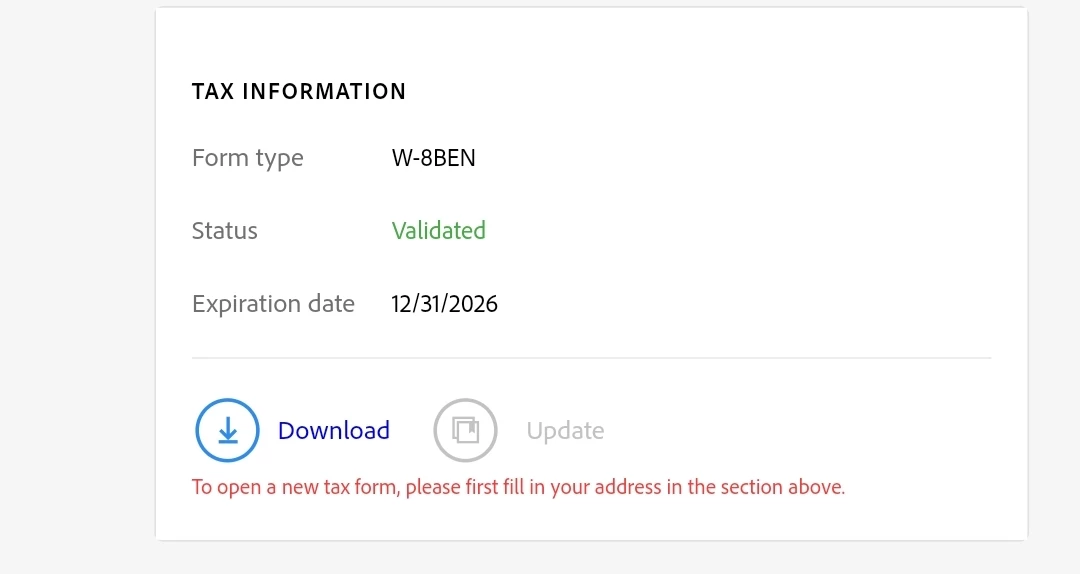 I can't opening my tax form,validate update option is disabled is anything wrong