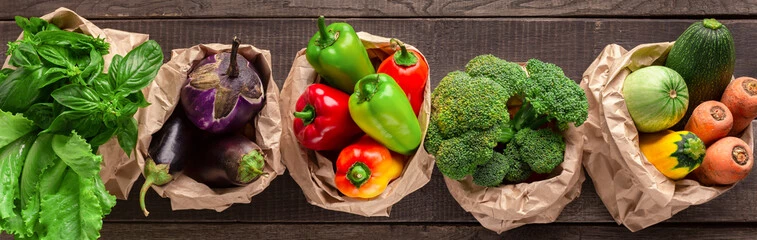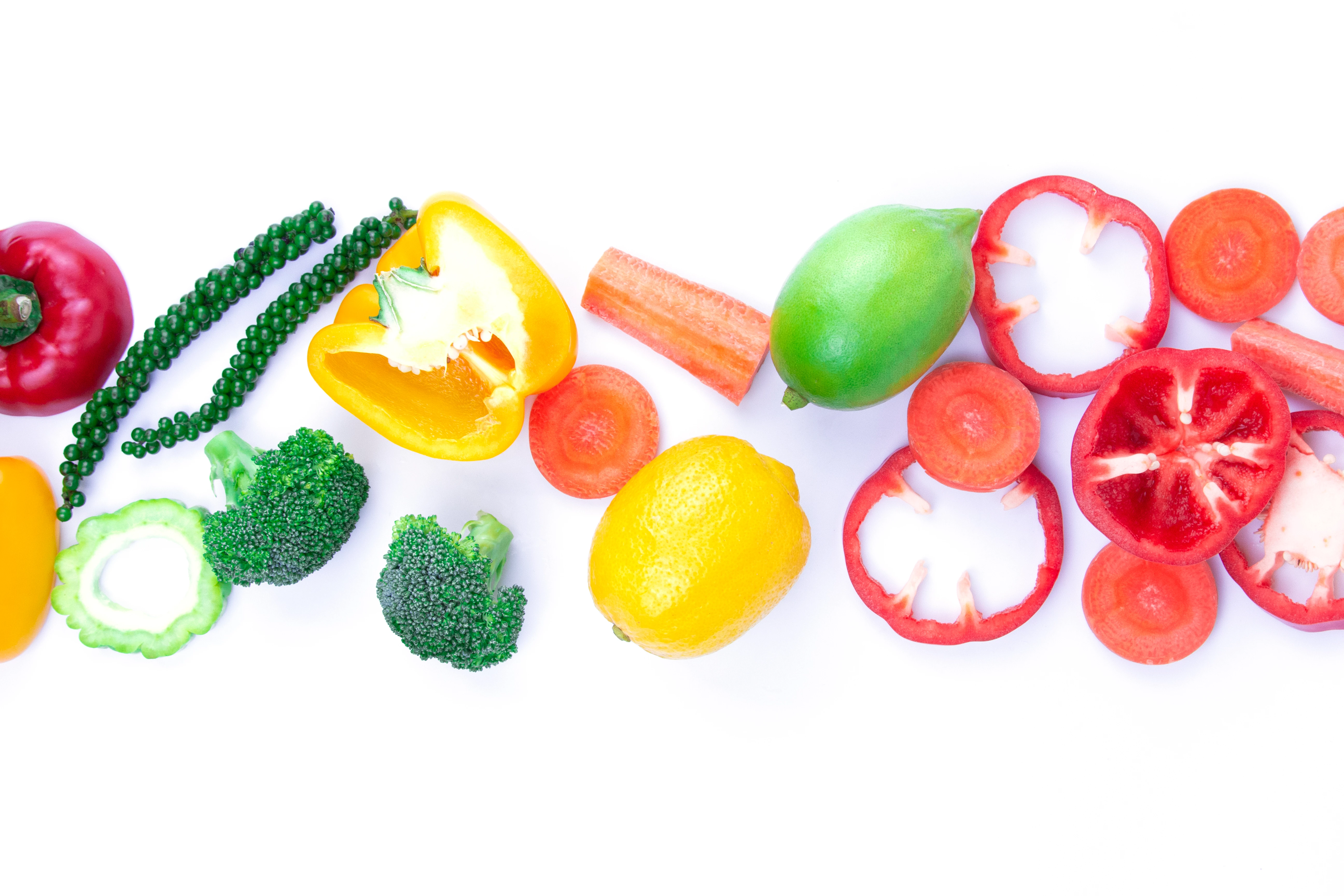 Neither image is sharply focused. The first one has some spots on the background. The second is over-exposed, and some of the vegetables look a bit dried out, particularly the carrots. The white balance of the background is a bit off - a bit too blue in the shadows. I like the bright colors and composition, so it's worth trying again.