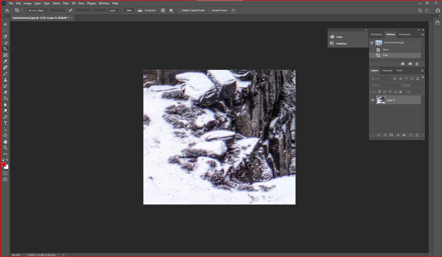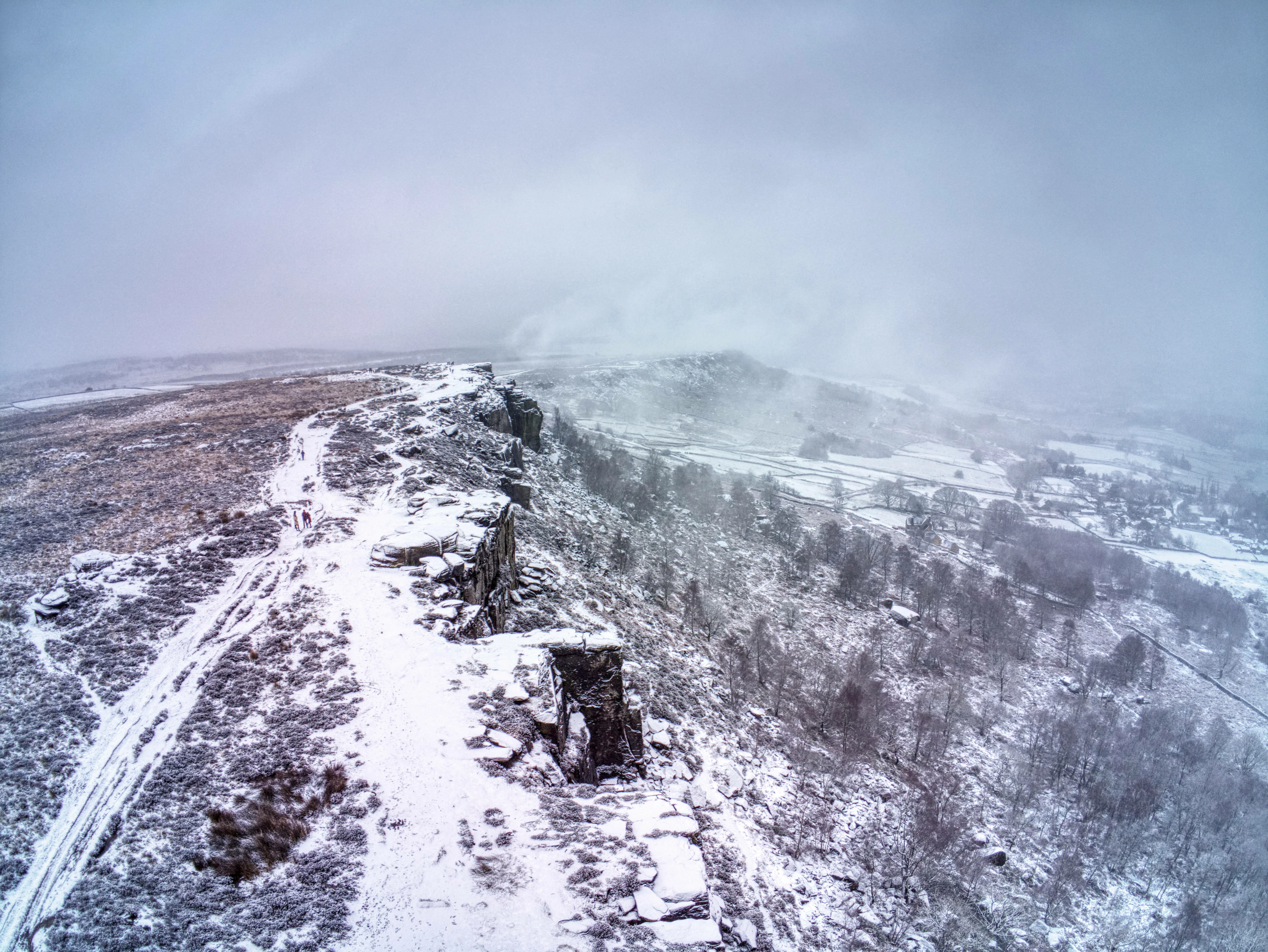 White balance is off. it is too magenta. The snow should be white. Secondly, the overall image quality isn't that good. When you zoom in you can see the image degrading a bit. Drone cameras and the sensors are small, so due to this noise becomes more apparent and the pixels tend to show more as you zoom in. Similar to smartphone cameras.
