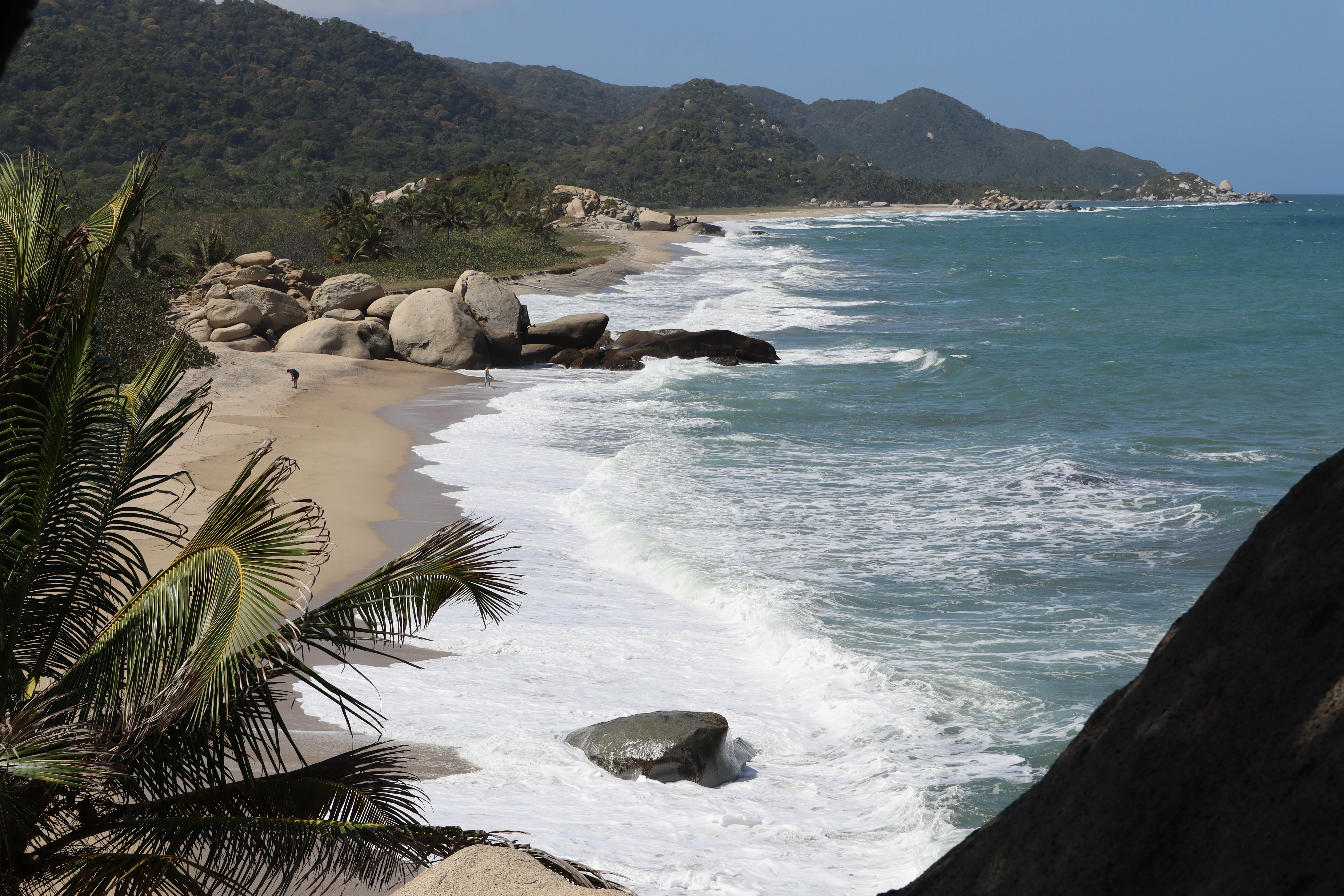 1920: The upper corner needs to be edited out and the lower-right corner needs to be lightened-up. The same for the plant to the left. Even with those edits, I'm not certain that it passes. Focus should be on the rocks/people instead on the foreground. People on the beach will need probably model releases.