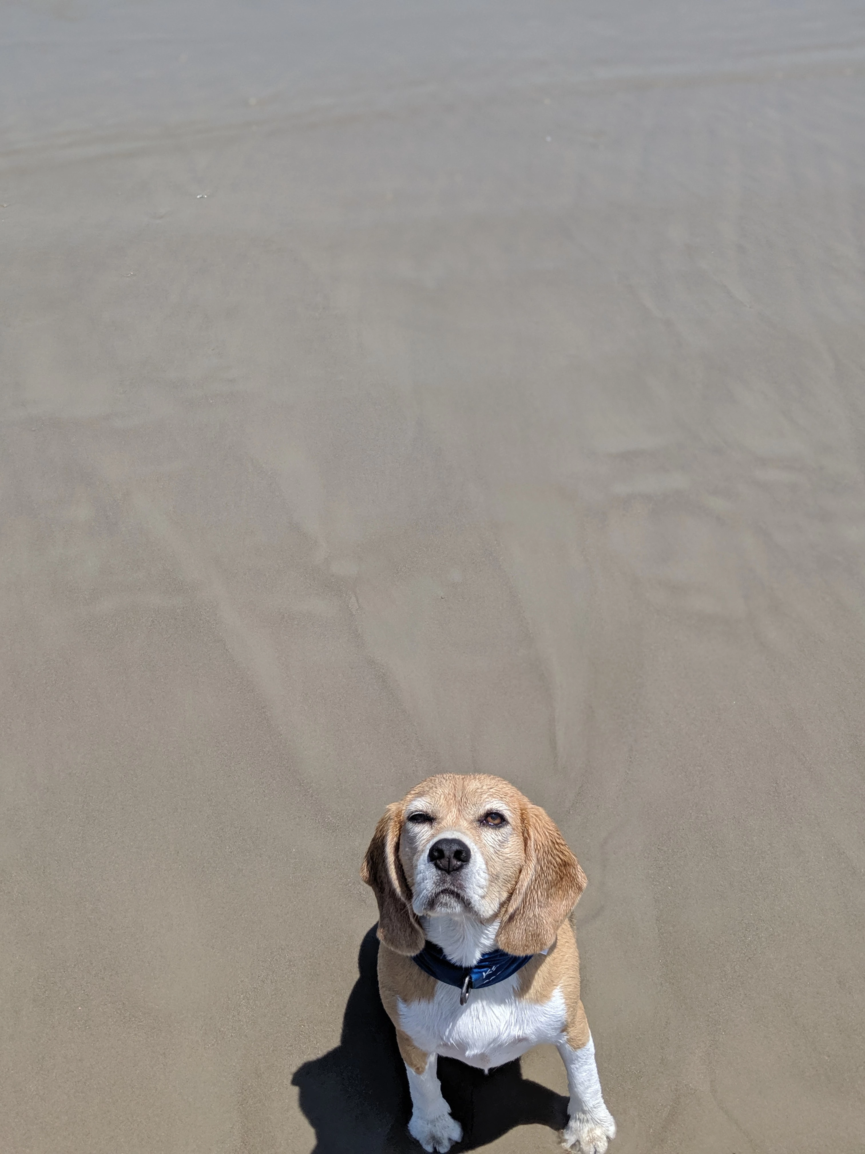 The first picture: (Dog on the beach): Cropping is wrong. You should have left more material in the lower border. The picture is, however astonishing good for a phone picture, however the fake depth of field has it's limits as it cannot sense the sand correctly.