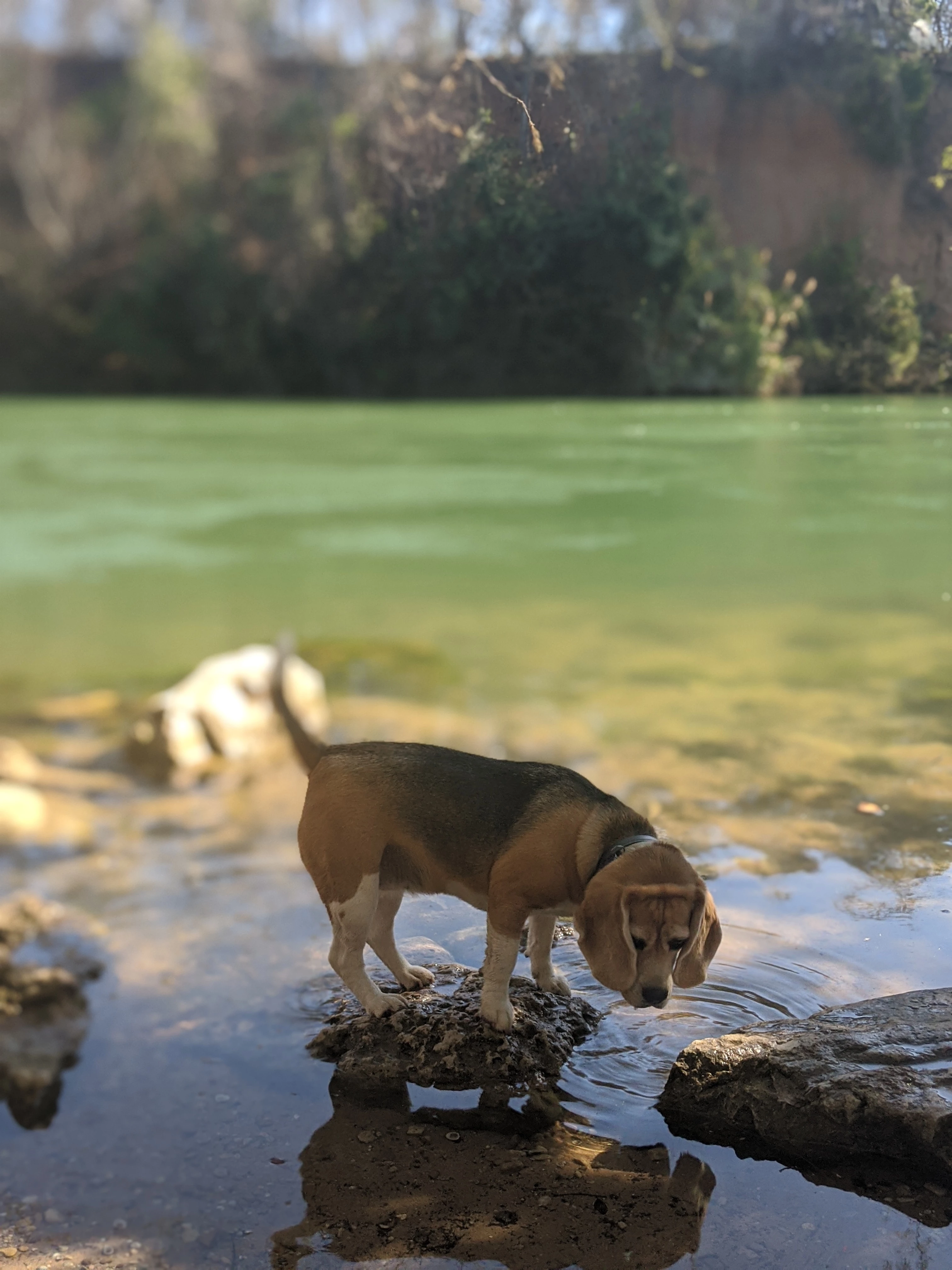The second picture: (Dog on the stone): It's nicely framed, but when you look at it at 100% magnification, you really see the imperfections introduced by the small sensor and the overzealous processing of the in camera logic.