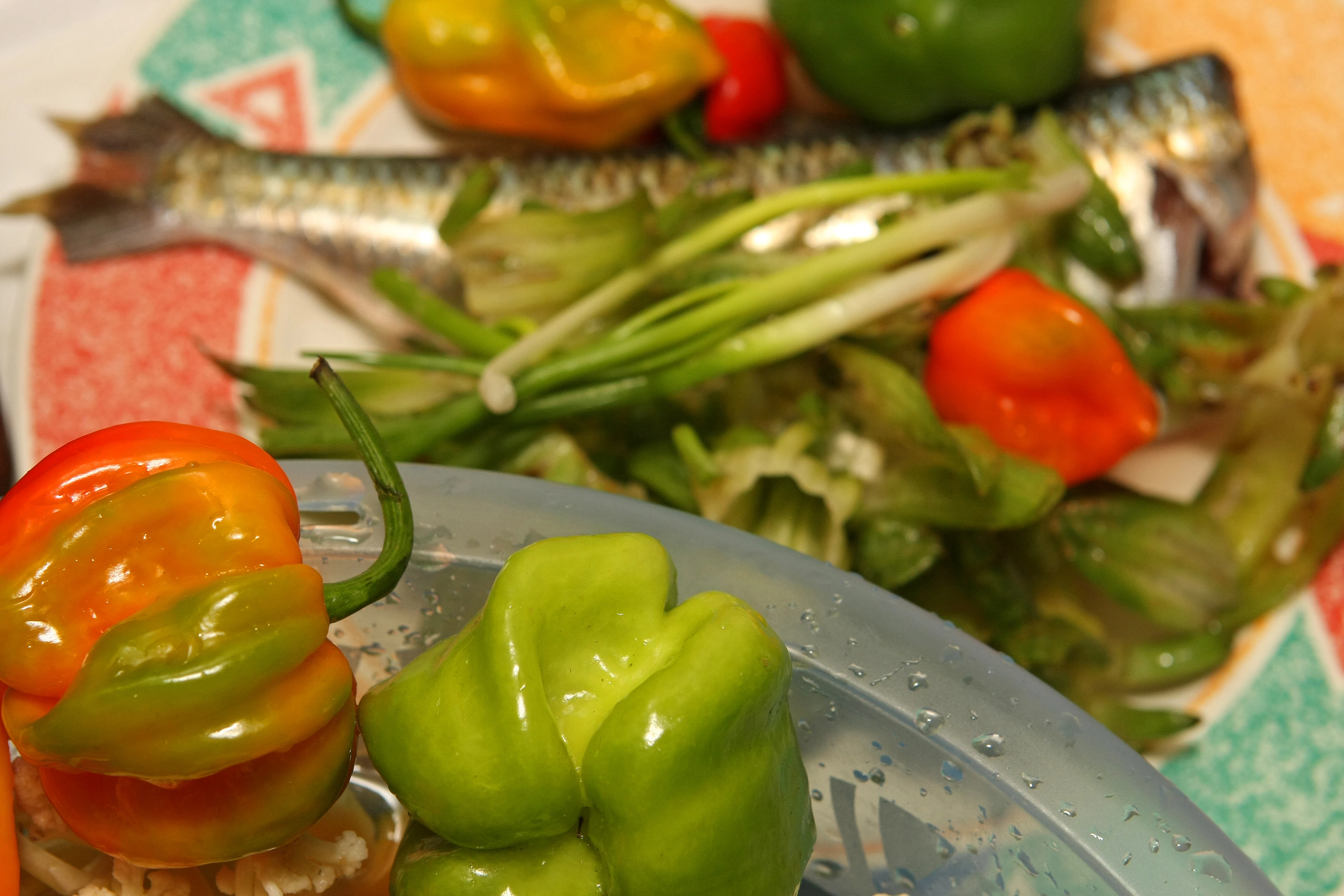 In addition to what is said the first to third images were either taken too close, or too much of a shalow depth of field. Too much of the subjects are out of focus. The composition of the second image is way out. Cropping the peppers was not a good idea with so much blurry negative space. The fourth image is the best but there is a white balance issue. The framing has a red color cast.