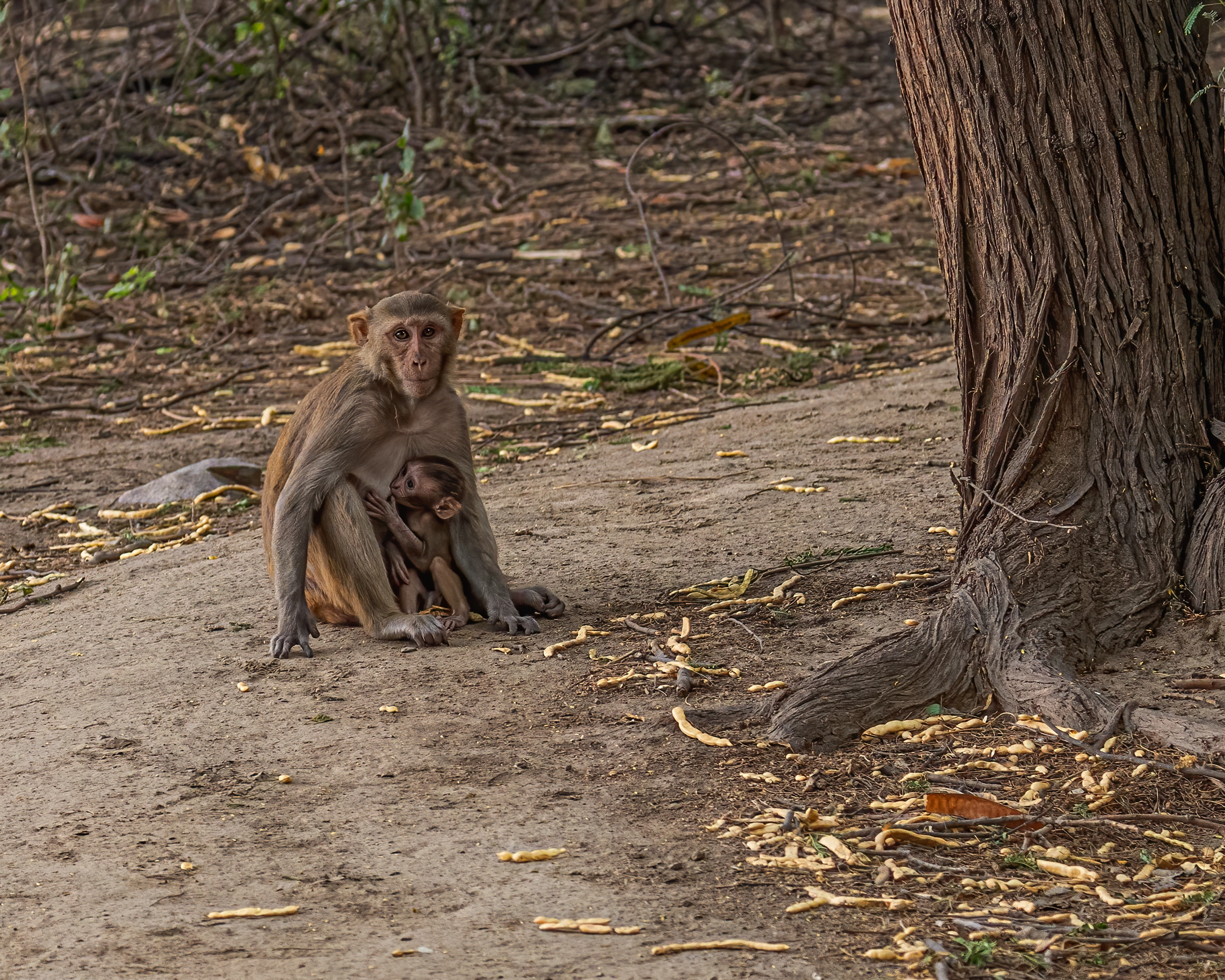 The tree is in focus, the apes are out of focus and have washed out colours.
