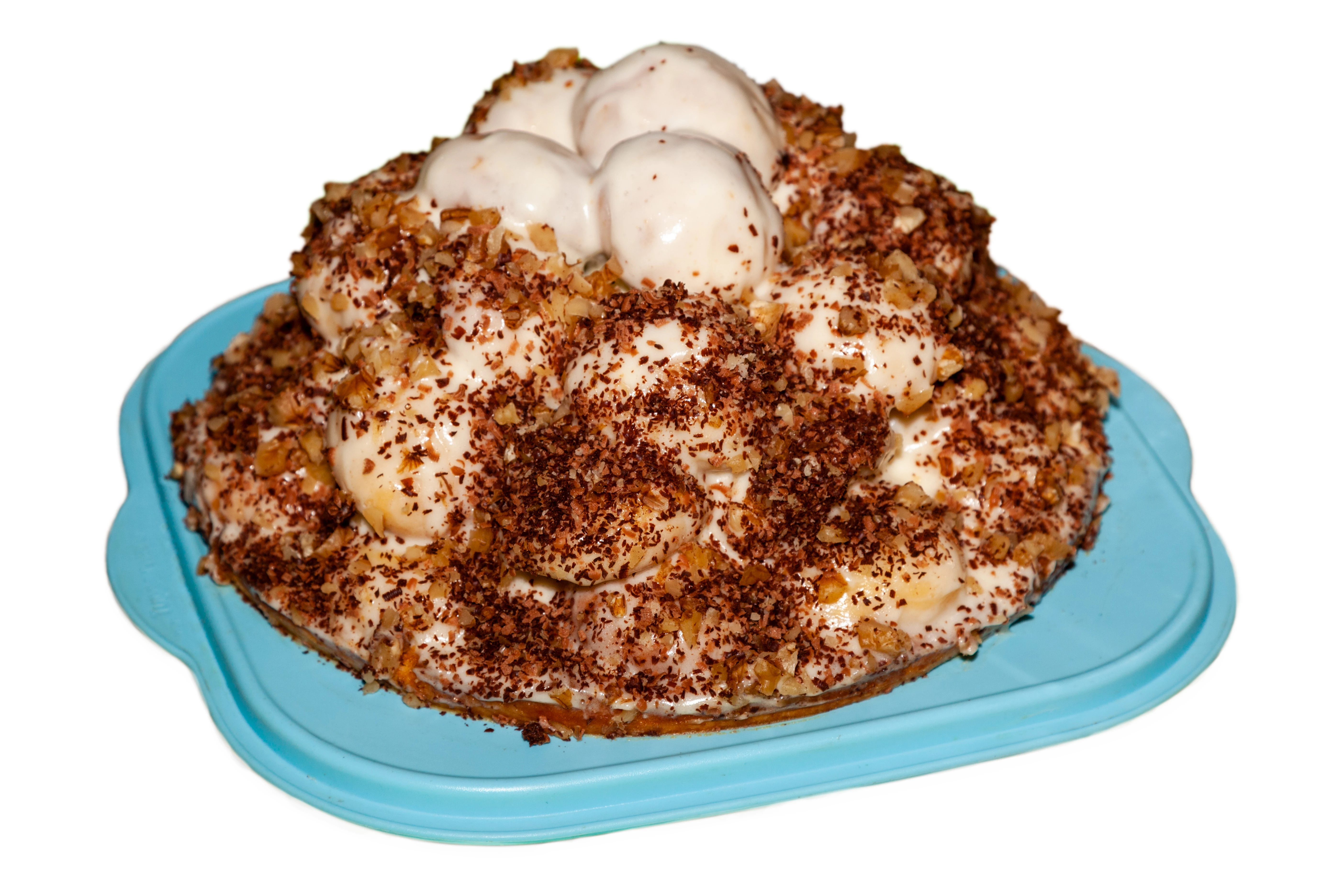 Der obere Bereich ist nicht im Fokus. Ein weiteres Problem könnte der Freisteller sein. Objekte sollten immer etwas nach innen freigestellt werden, damit kein störender Saum zu sehen ist. In einem schönen Milieu auf einem schönen Untergrund mit den Zutaten als Props fotografiert hätte es ganz hübsch werden können und man könnte es dann auch identifizieren.