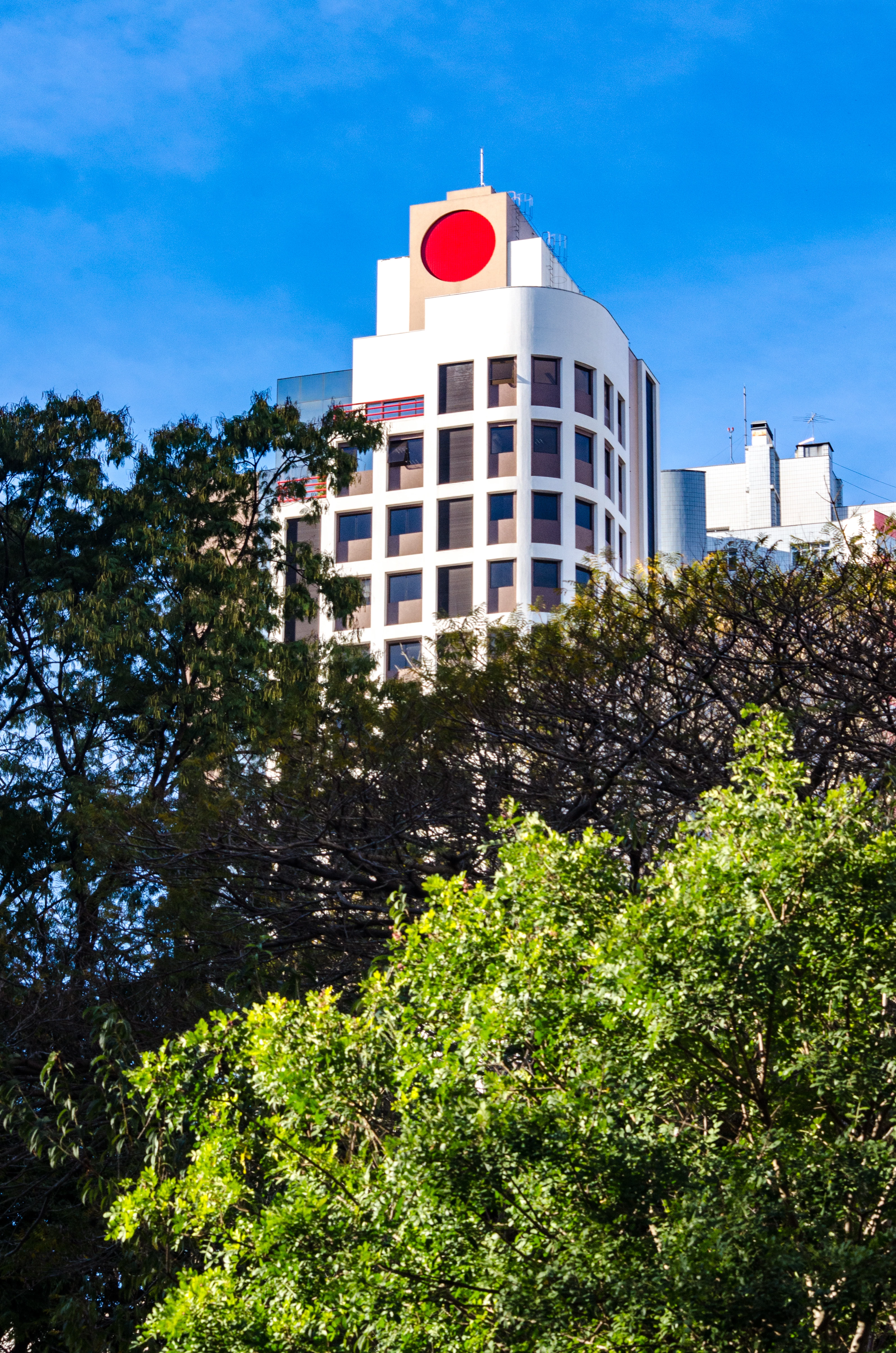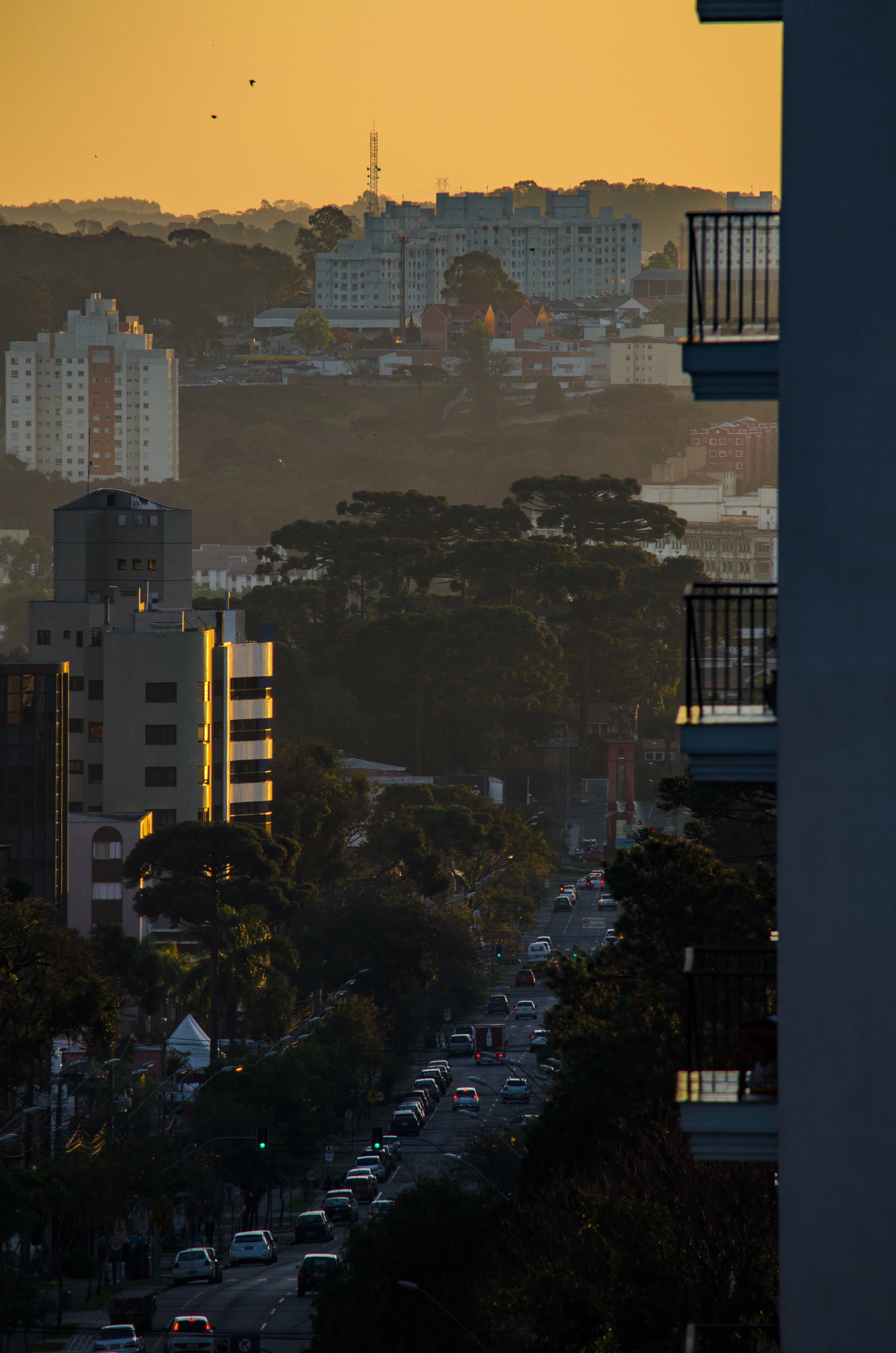1. Chromatic aberration- you see it with the cars and on the horizon where the sky meets the plants.
