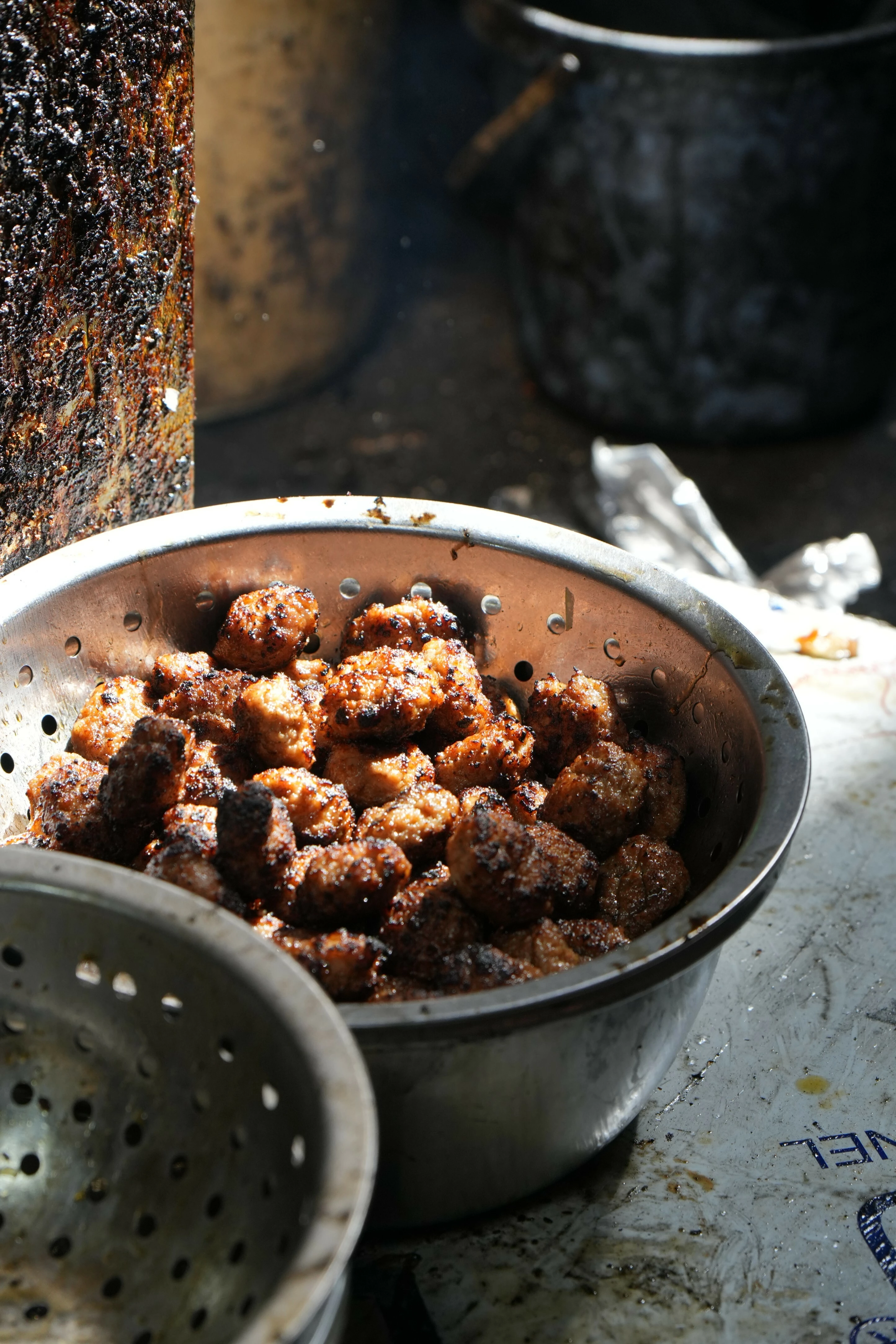 Composition and focus seem to be the primary issues. The large blurry object in the foreground and the shiny object (tin foil) are distracting. The DOF appears to be too shallow. There are blownout reasons, such as the left rim of the pot.