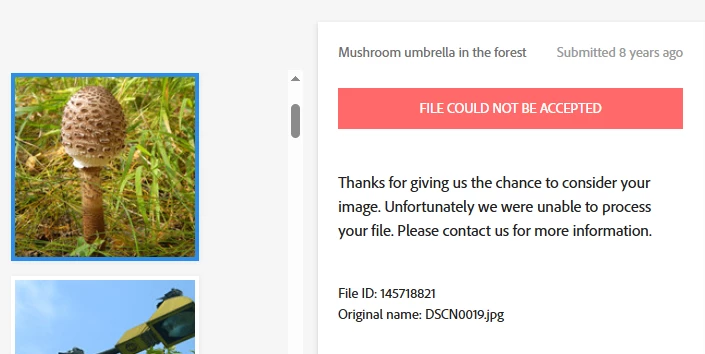 I found files with this rejection reason. There are quite a few of them. The wording is: "Thank you for allowing us to review your image. Unfortunately, we were unable to process your file. For more information, please contact us."