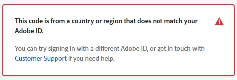 When I click on the link a new window opens up with the redeem code, but when I click on "redeem" I get the error "This code is from a country or region that does not match your Adobe ID. "