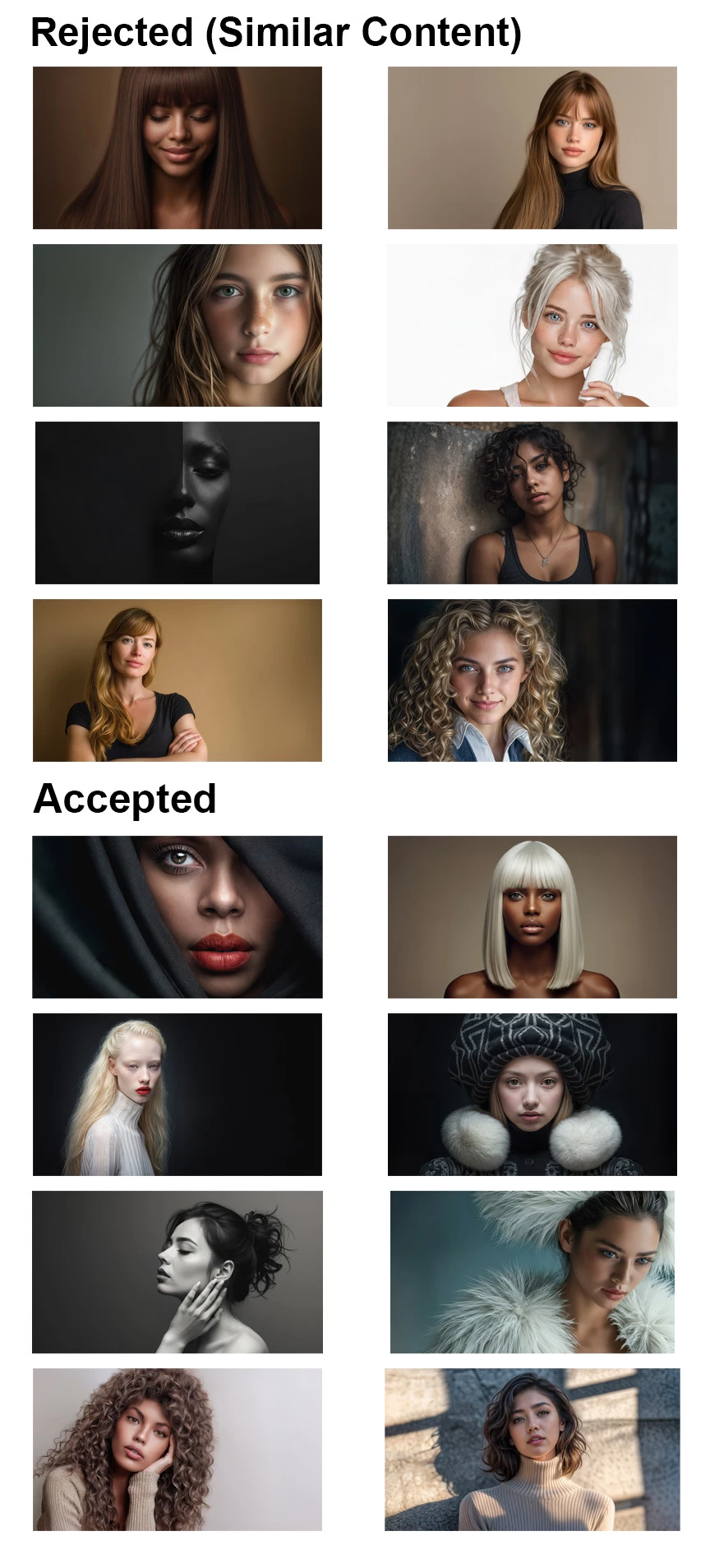 The image below shows a comparison between assets that were rejected due to similar content and those that were accepted. These were all reviewed within the last couple of months, and after the similar content rejection became an ongoing issue. I believe it is apparent in these examples that the reasoning behind the rejected assets vs. the accepted ones is seemingly quite random. I have also stated for some time that titles and keywords may have some bearing on whether assets are accepted or rejected due to similar content. However, in these cases, I made a concerted effort to choose unique titles and keyword and to place the keywords in an order such that the more generic ones appear last in the list. This may or may not have less bearing on whether assets are accepted or rejected that I originally felt. Or perhaps something has changed, since a couple of these images were resubmitted with changes and variations to titles and keywords and were still rejected a second time for similar content.